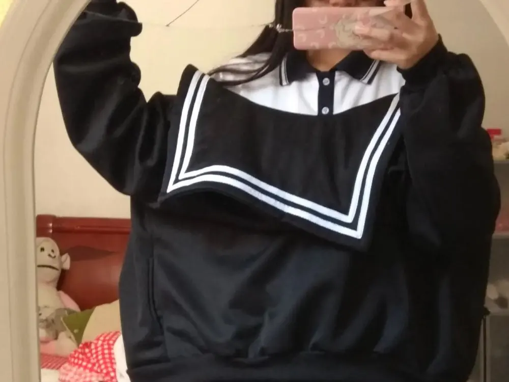 Толстовка QWEEK Kawaii на молнии с матросским воротником, в японском стиле, с длинным рукавом, милые топы для подростков, 2021 г., JK, розовая, темно-синяя, мягкая, Kpop