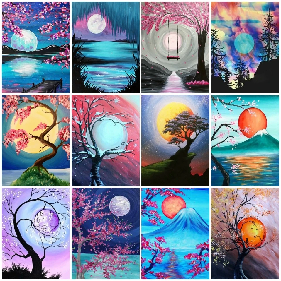 Алмазная картина Название: AZQSD Алмазная картина Луна Полная площадь бриллиантовая Вышивка Дерево Пейзаж Вышивка крестом Стразы мозаика украшение дома