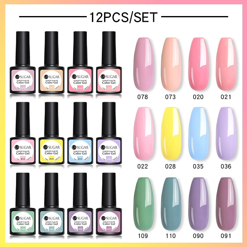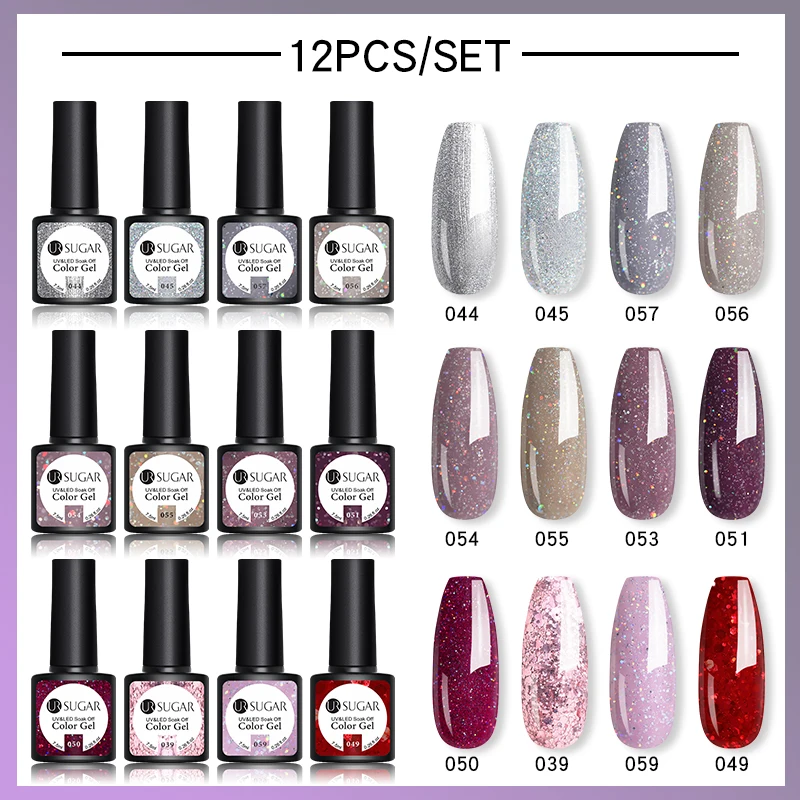 Набор гель-лаков для ногтей UR SUGAR, 12 шт., блестящий акриловый набор для ногтей, впитывающий Гибридный Полупостоянный Гель-лак, набор для дизайна маникюра