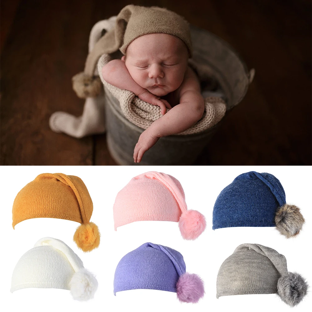 Шапка для фотосъемки новорожденных, мягкие хлопковые милые шапки для малышей, вязаная меховая шапка с помпоном, аксессуары для фотостудии для детей 0-6 месяцев
