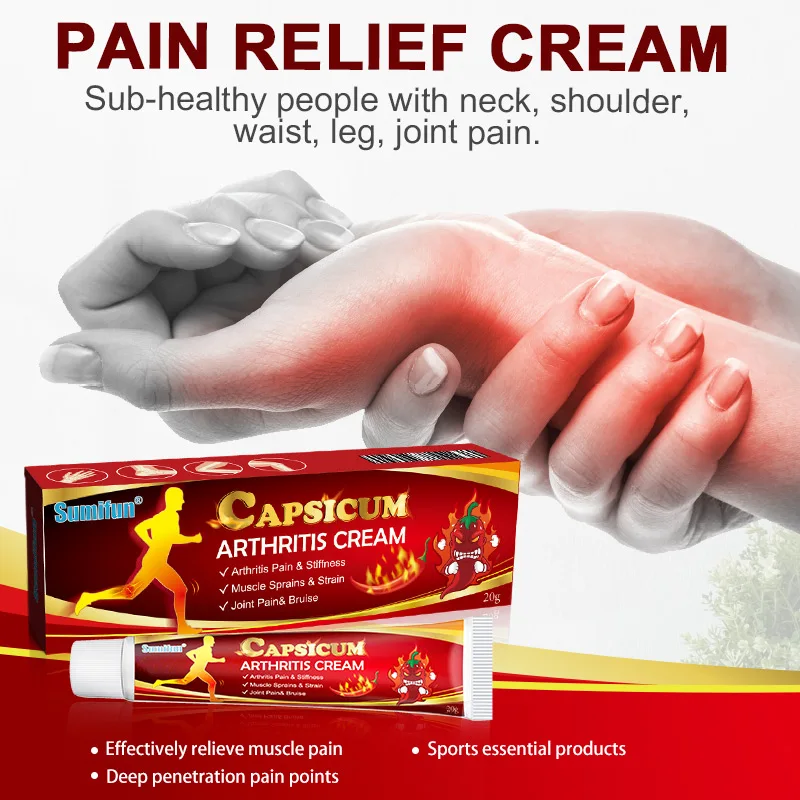 Наименование товара:Sumifun Capsicum крем от артритаВес нетто:20 г/шт.Срок годности:24 месяцаХранение:Герметичный, защищенный светильник, хранится в прохладном и сухом месте.Сфера применения:Подходит для адъювантного лечения дискомфорта шейки матки, плеч, поясничного дискомфорта, суставов ног и травм мягких тканей.Использование:Вымойте пораженный участок теплой водой, затем равномерно нанесите необходимое количество этого продукта на пораженный участок и аккуратно размешайте в течение мгновения, чтобы он полностью впитался, 2-3 раза в день.Меры предосторожности:1. Внешние принадлежности, не пропускайте его в рот и глаза.2. Используйте с осторожностью при аллергии на кожу и беременных женщин.3. Поместите изделие в место, куда детям нелегко связаться.4. Этот продукт не является заменой лекарств.