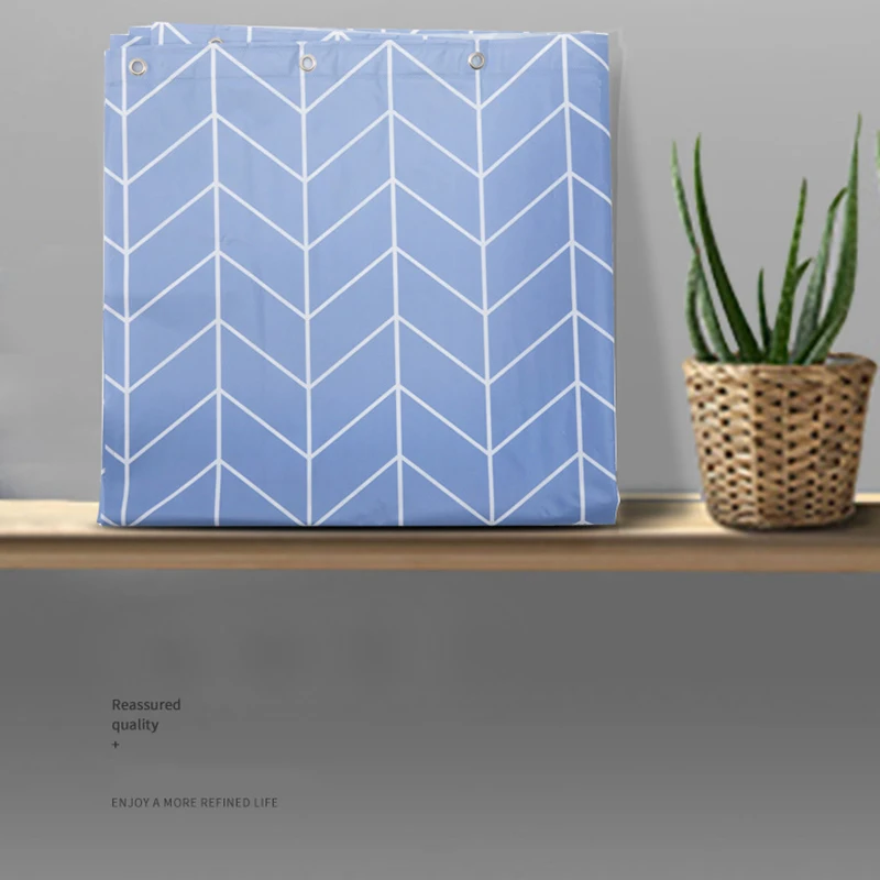 Название продукта: занавеска для душа в скандинавском стилеПетля для занавески для душа: металлическая медная петляХарактеристики изделия: Ширина * Высота (см)Подвесное кольцо для занавески для душа: жирное пластиковое кольцо CМатериал изделия: ПЭВАВодонепроницаемая занавеска для душа: мяч водонепроницаемый