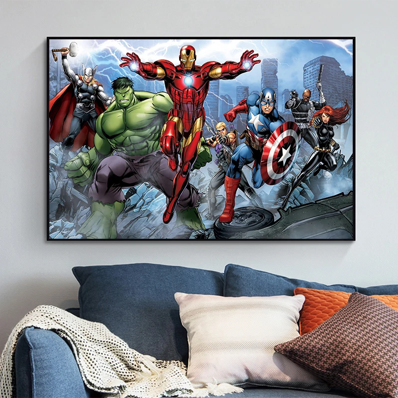 Настенные постеры с героями Marvel, Тор, Капитан Америка, Мстители, художественные плакаты и печать на холсте, Настенная картина для гостиной
