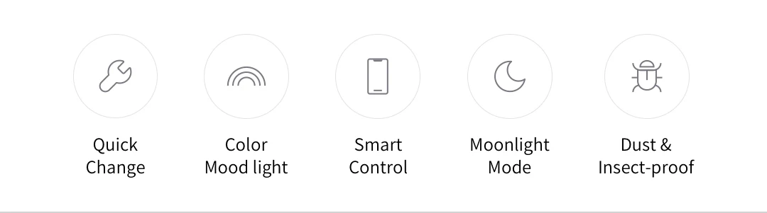* Быстрое изменение* Цветной светильник настроения* Умное управление* Режим лунного света* Защита от пыли и пыли