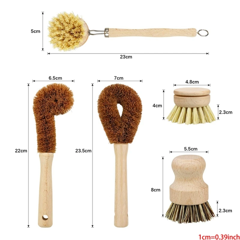 Набор чистящих щеток на основе растений, 6 предметов для очистки овощей и кухонных блюд, нулевые отходы и биоразлагаемые кухонные