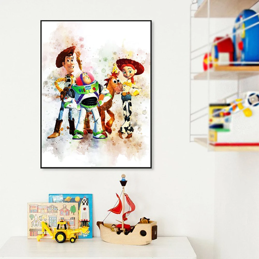 История игрушек, акварельные принты на e-mail Декор стены искусства вечерние История игрушек, холст Pantings для детей украшения Disney подарок на день рождения