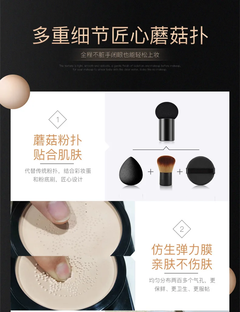 BB воздушная подушка основа Грибная голова CC крем отбеливающий консилер макияж косметика водостойкая осветляющая основа для лица тонОписание:Мгновенный макияж для естественного и идеального образа.Мгновенно скрывает недостатки, темные пятна и покраснения, а также разглаживает неровный тон кожи, придавая ей красивый, естественный и сияющий вид.Увлажняющие и масляные свойства поддерживают кожу свежей и комфортной в течение всего дня.Мягкий, светильник и нежирный крем, обеспечивающий интенсивное увлажнение и питание кожи.Омолаживающая формула, повышающая эластичность кожи, укрепляющая и более гладкий тон.Характеристики:Тип товара: BB кремЦвет: Естественный цвет, слоновая костьТип кожи: обычнаяНаличие солнцезащитного крема: ДаСодержание нетто: 20 гПосылка1 BB крем, 1 * спонж с грибной головкой