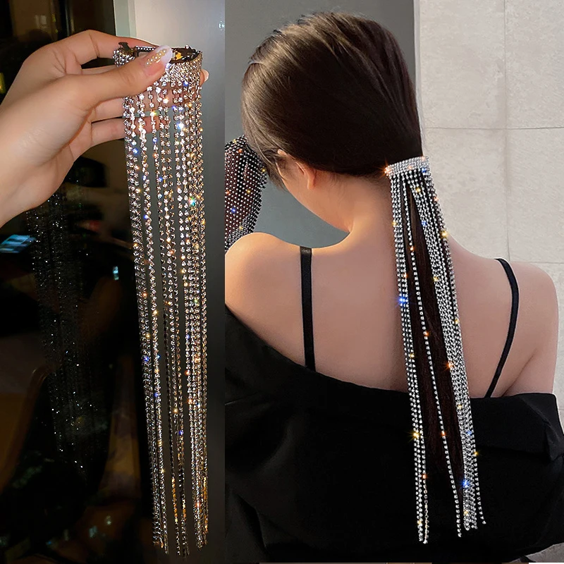 Блеск Полный заколки для волос для женщин длинные кисточки Кристалл...