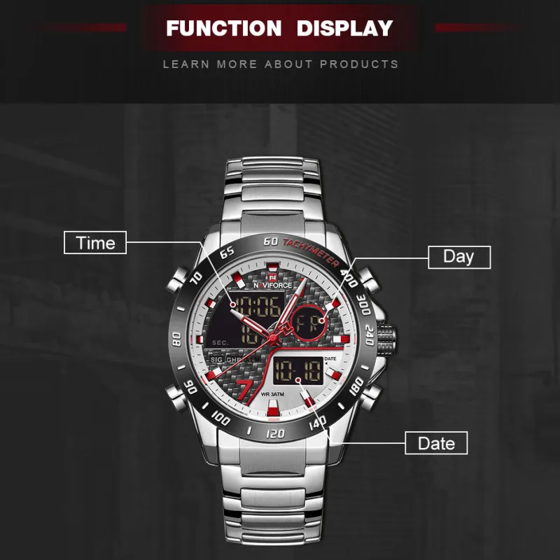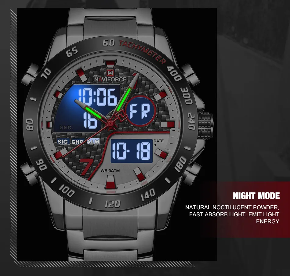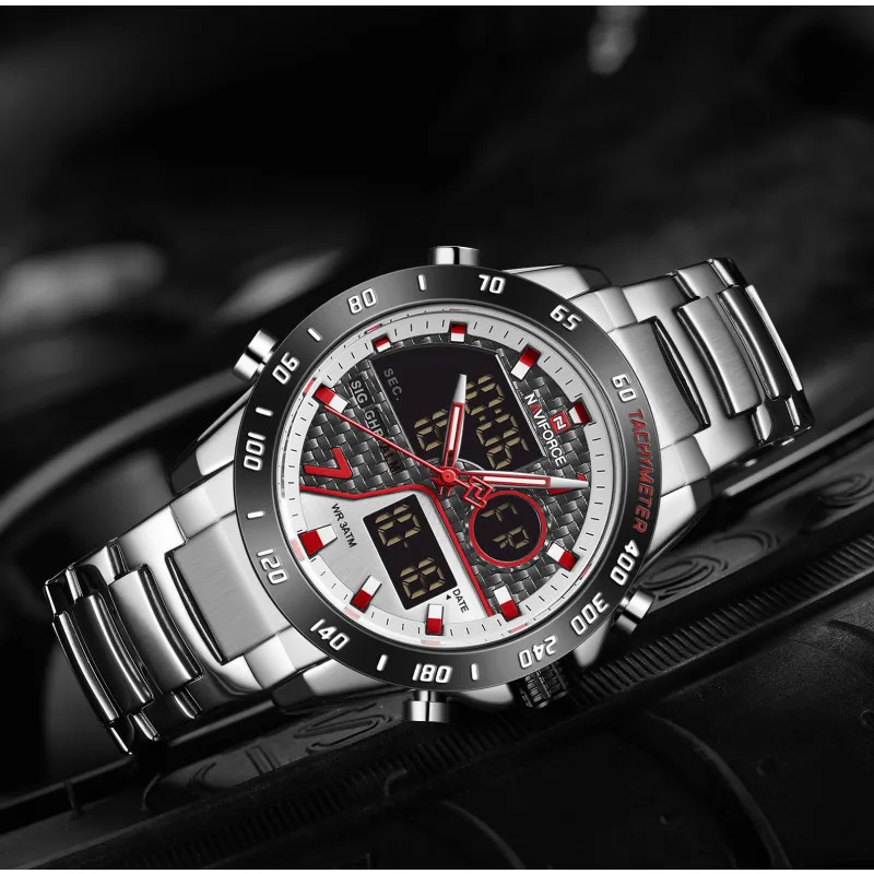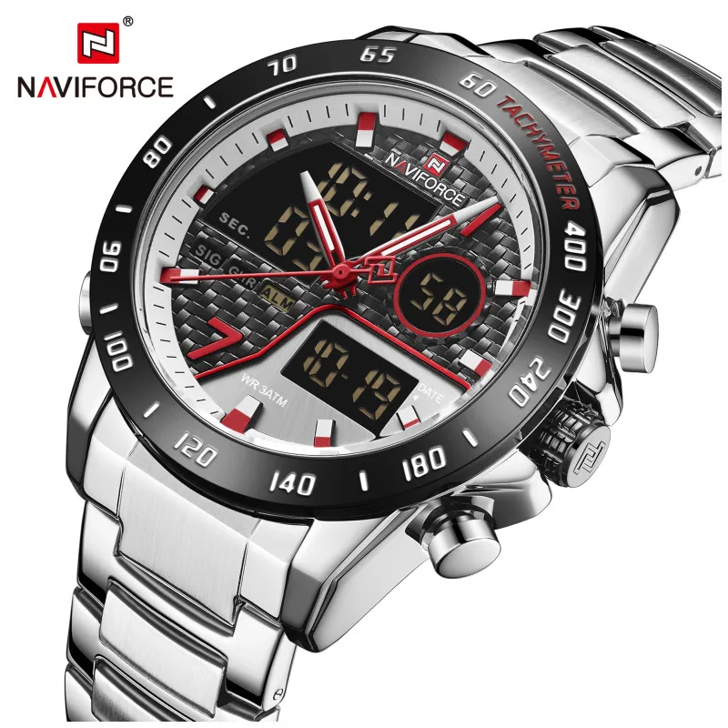 Часы наручные NAVIFORCE Мужские кварцевые, модные деловые Роскошные водонепроницаемые с двойным дисплеем и датой, в стиле милитари