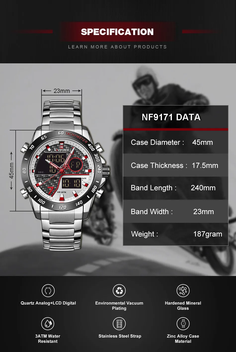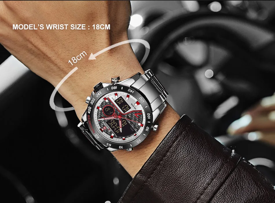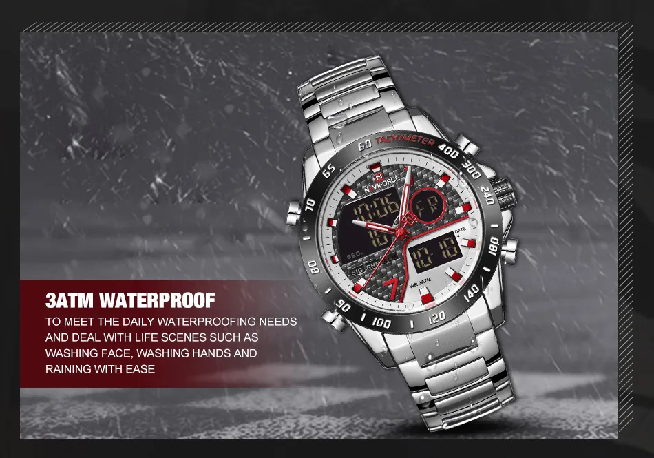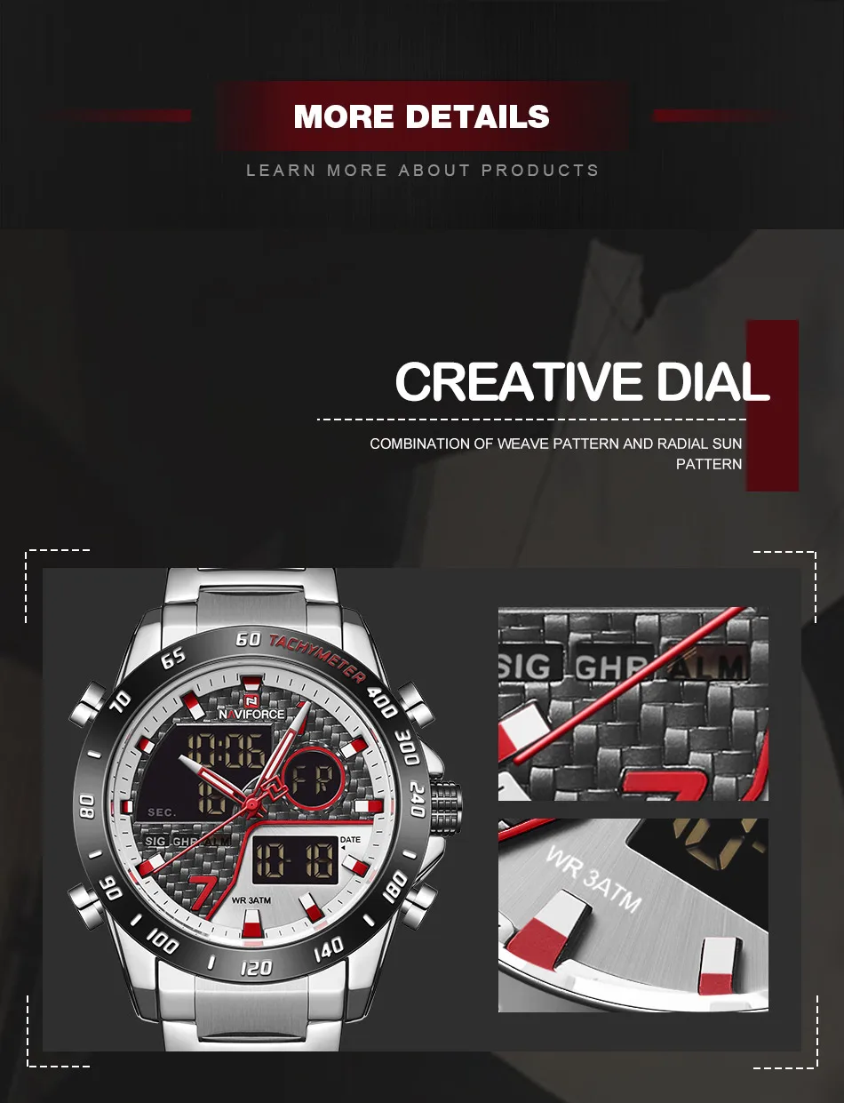 Часы наручные NAVIFORCE Мужские кварцевые, модные деловые Роскошные водонепроницаемые с двойным дисплеем и датой, в стиле милитари