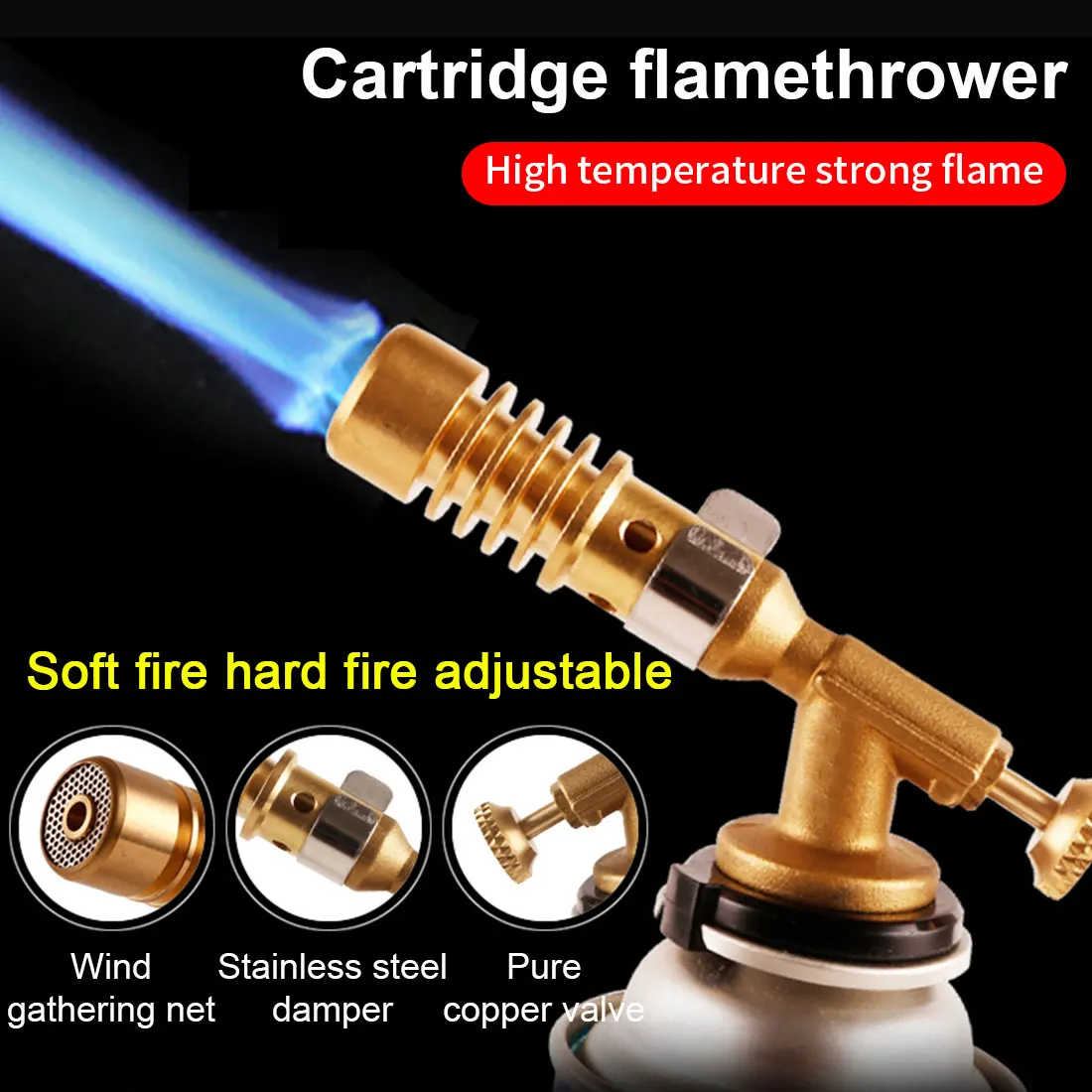 Тип: высокотемпературный газовый турбо-фонарь Материал: медный металл Цвет: Золотой + черный Размер: 136 мм * 23 мм
