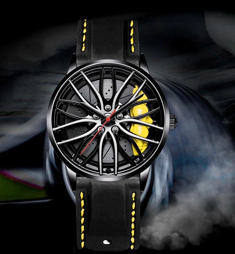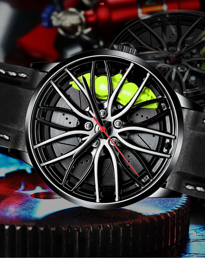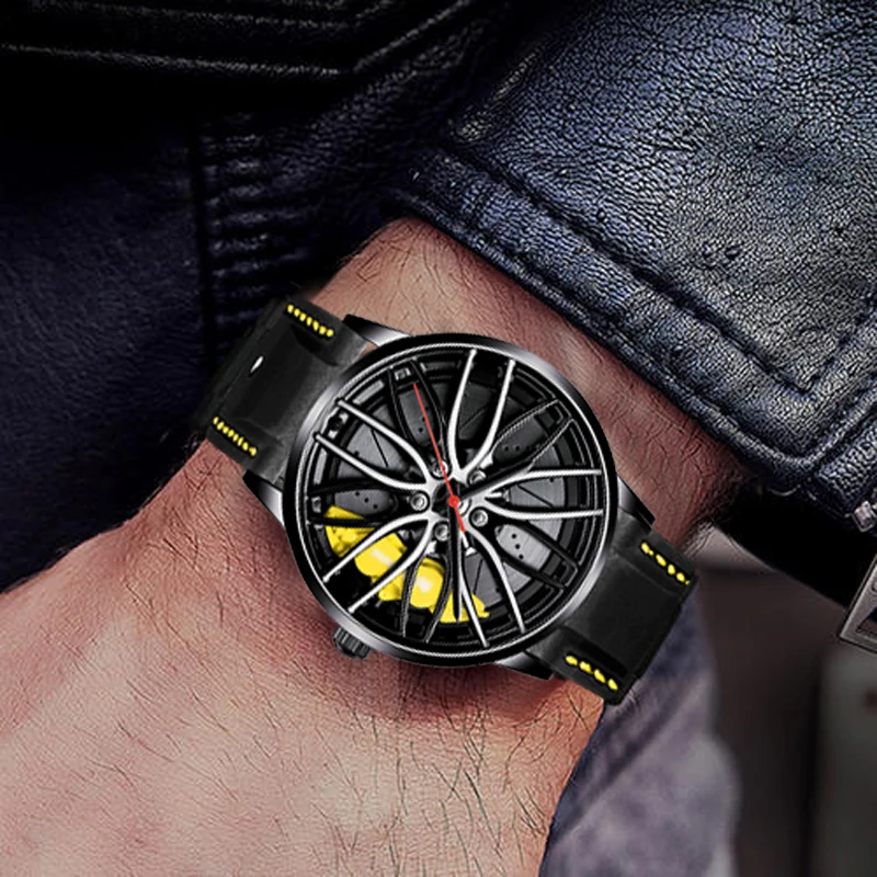 Новинка 2021, мужские наручные часы, мужские часы с автомобильным колесом, модные спортивные часы, кварцевые часы с сетчатым циферблатом, мужские круглые часы с чехлом