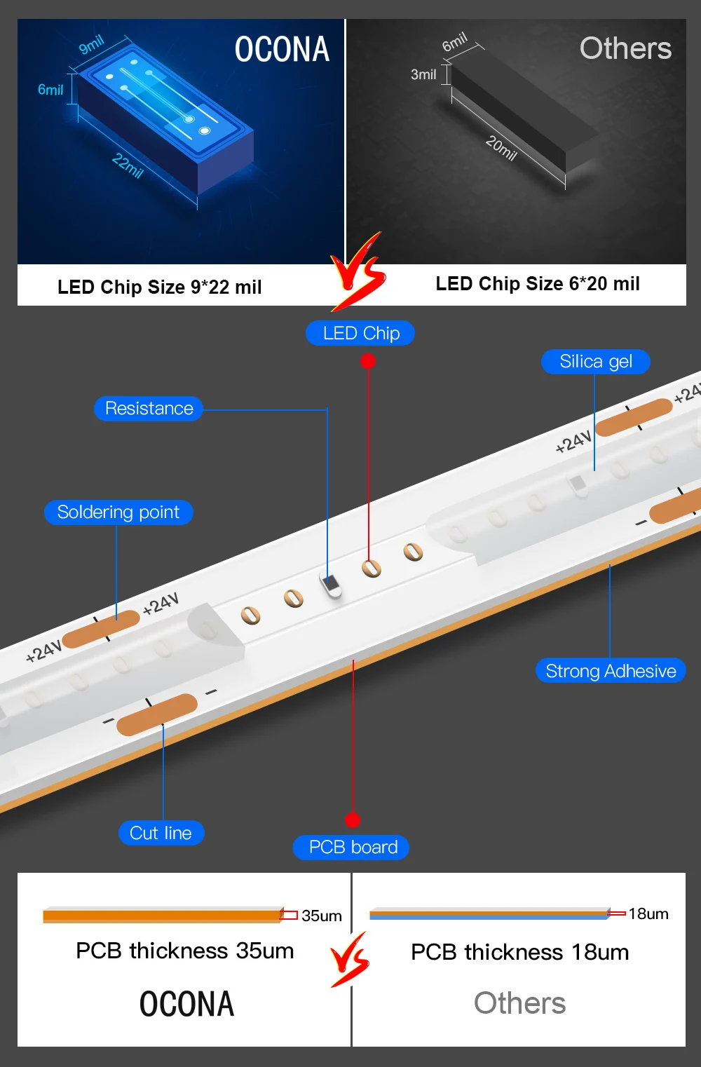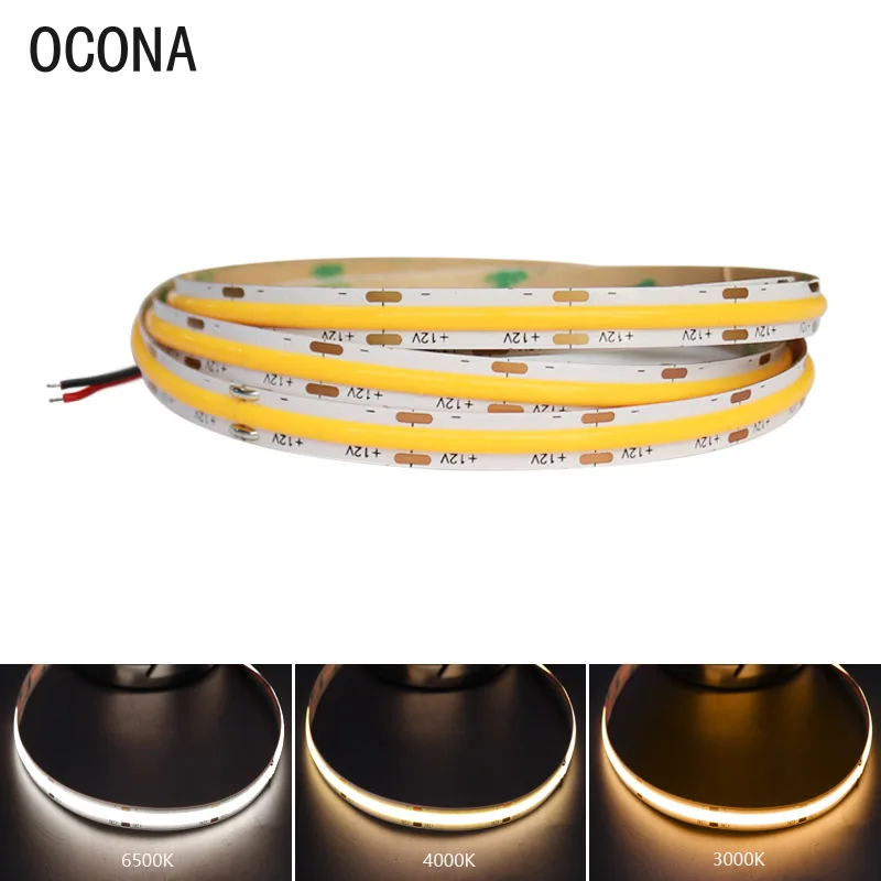 OCONA 15 Вт/м высокая яркость DC12V/24 В COB светодиодные полосы света 480 светодиодов/м гибкий Теплый/Природа/холодный белый Диммируемый