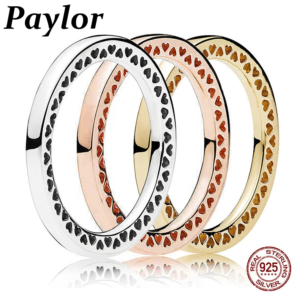 Paylor, 3 цвета, Стерлинговое Серебро 925 пробы, кольца в виде сердца, простые штабелируемые модные ювелирные изделия в Instagram для женщин, подарок для помолвки
