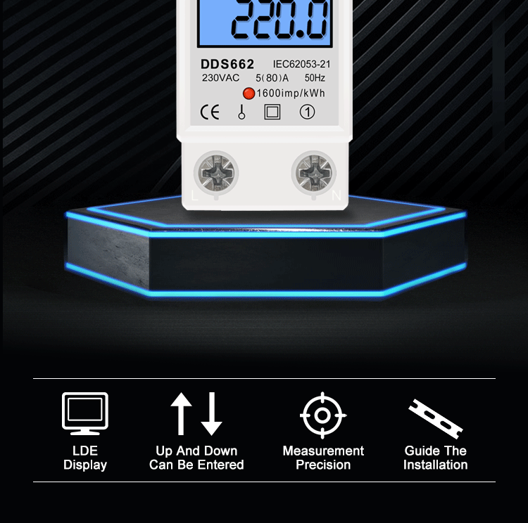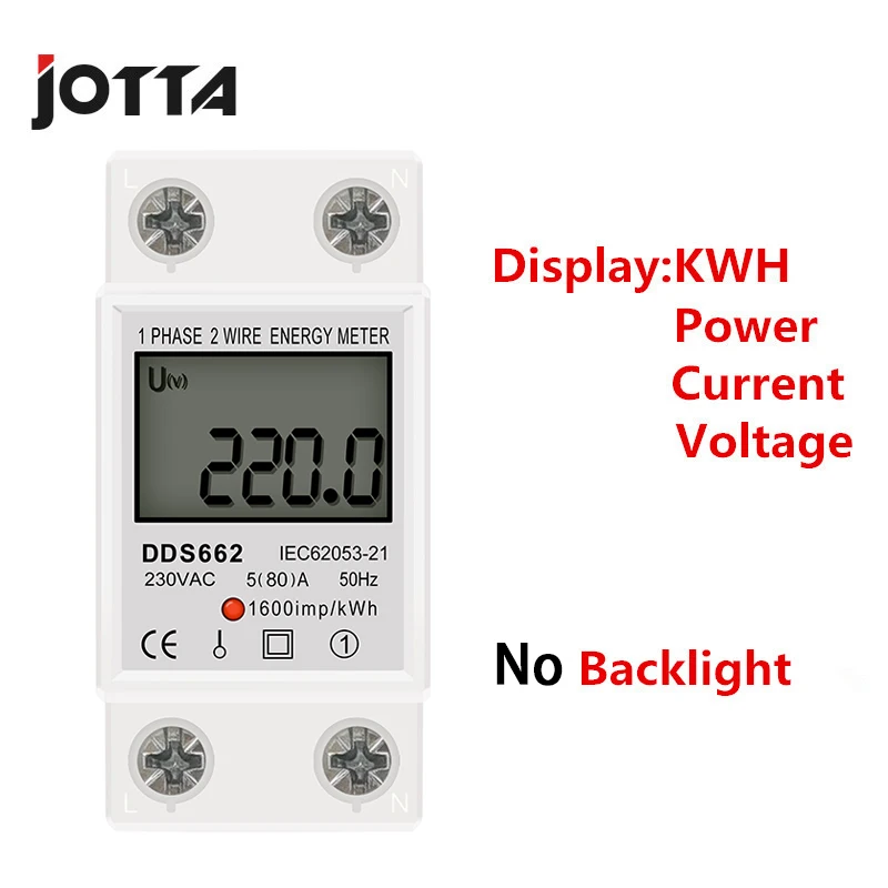Однофазный счетчик электроэнергии на Din-рейку с ЖК-дисплеем и цифровой подсветкой, ваттметр, электронный AC 220 В 80 А