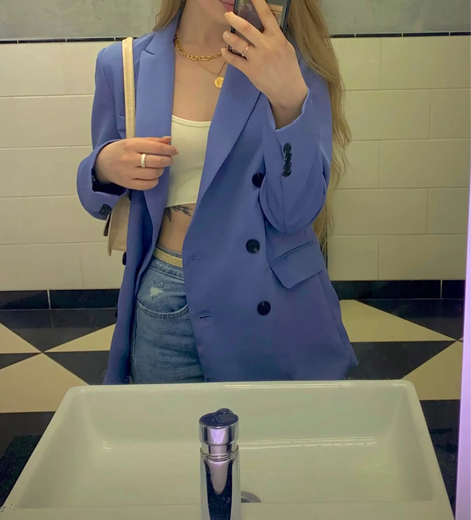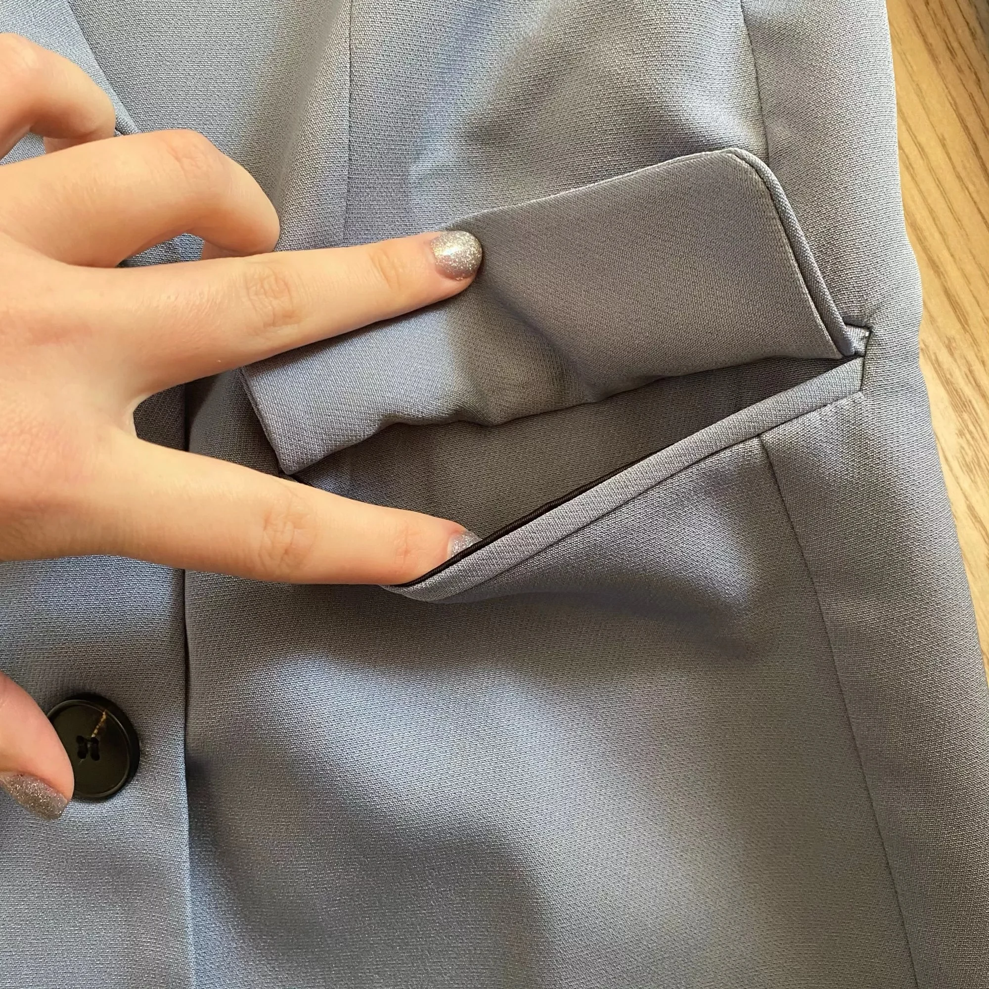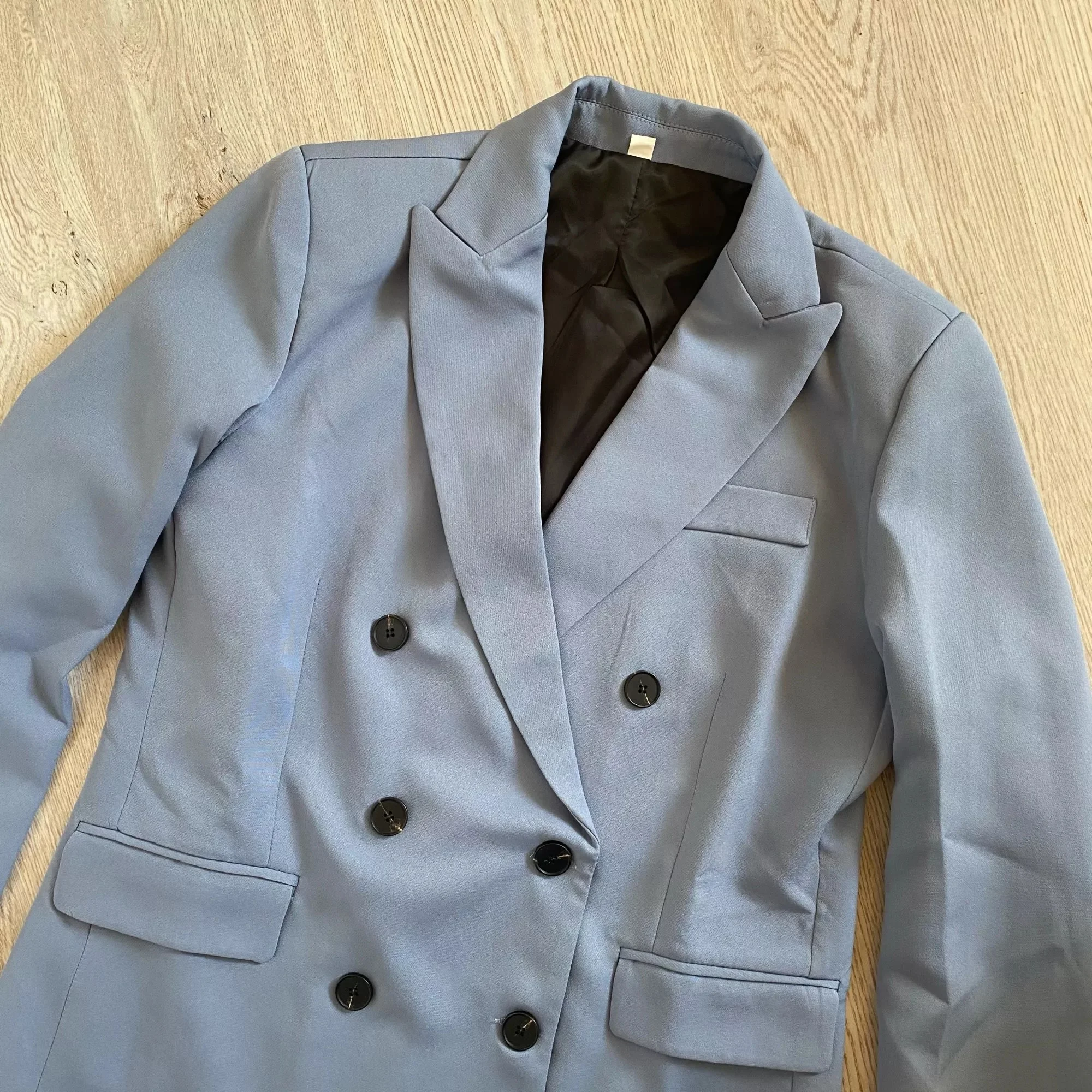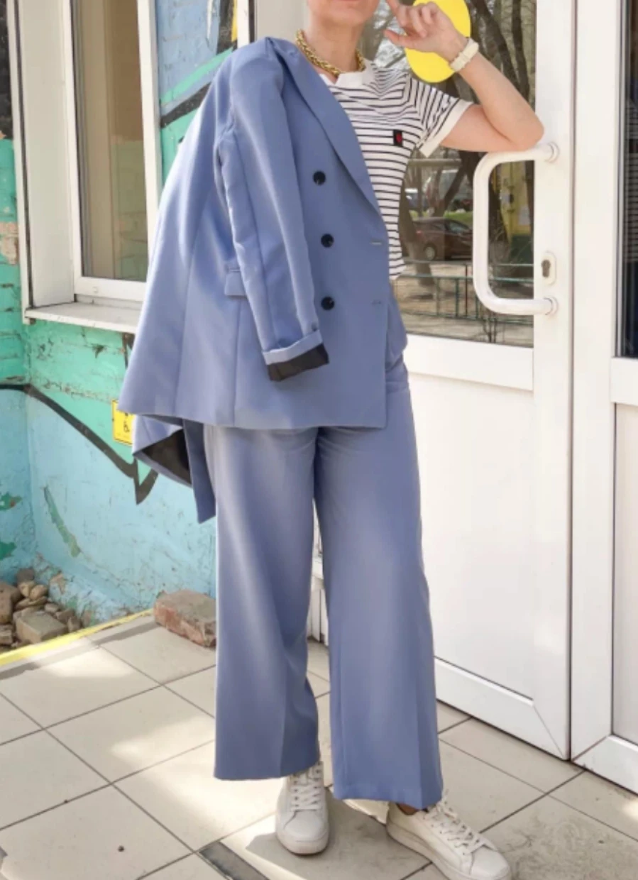 Женский костюм из двух предметов, голубой двубортный пиджак и повседневные Прямые брюки, Элегантная Модная шикарная одежда для весны, 2022