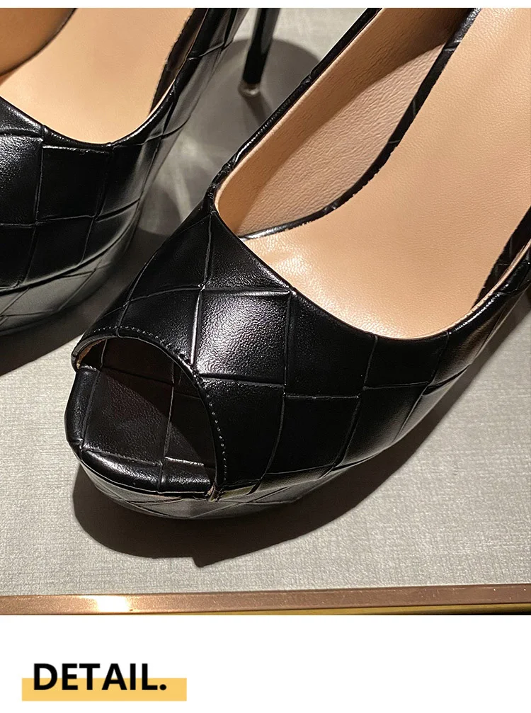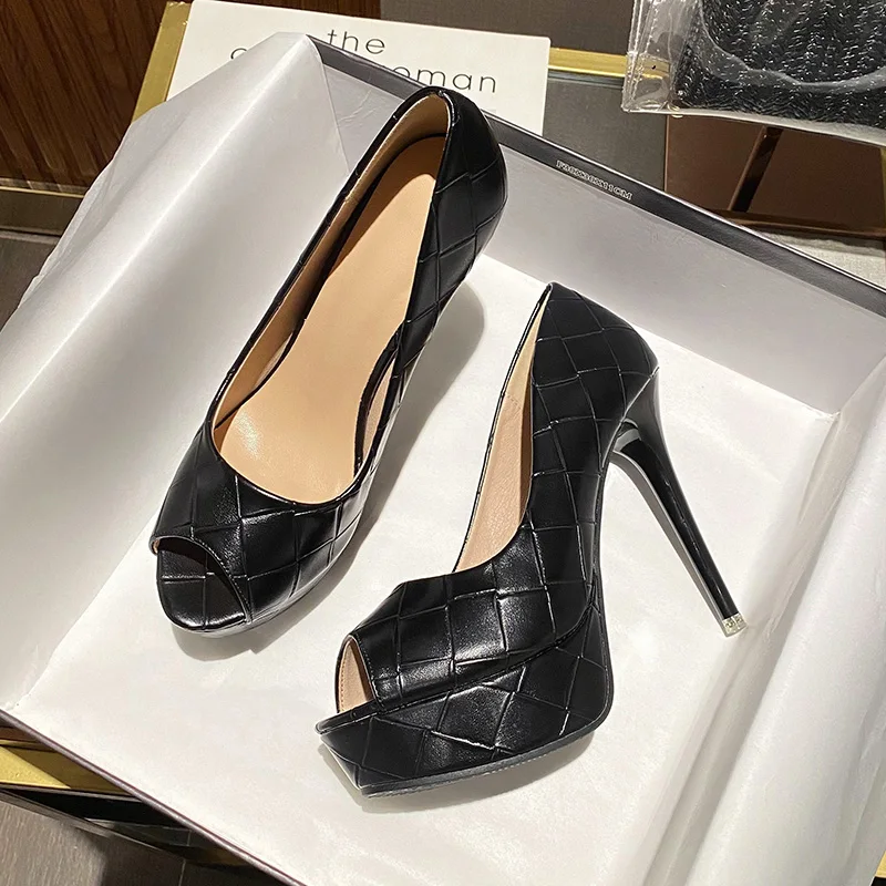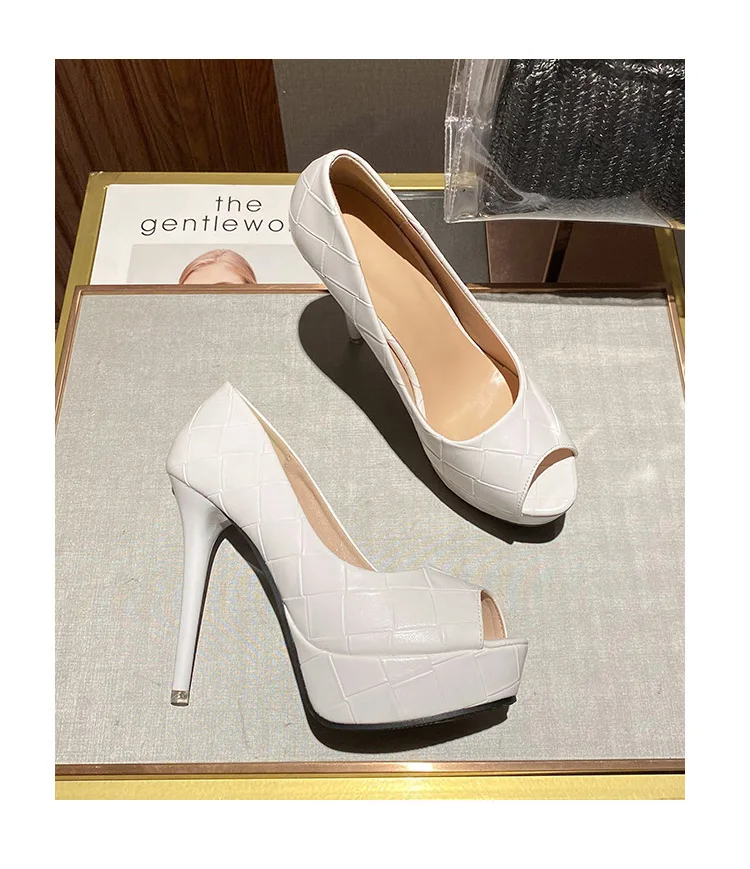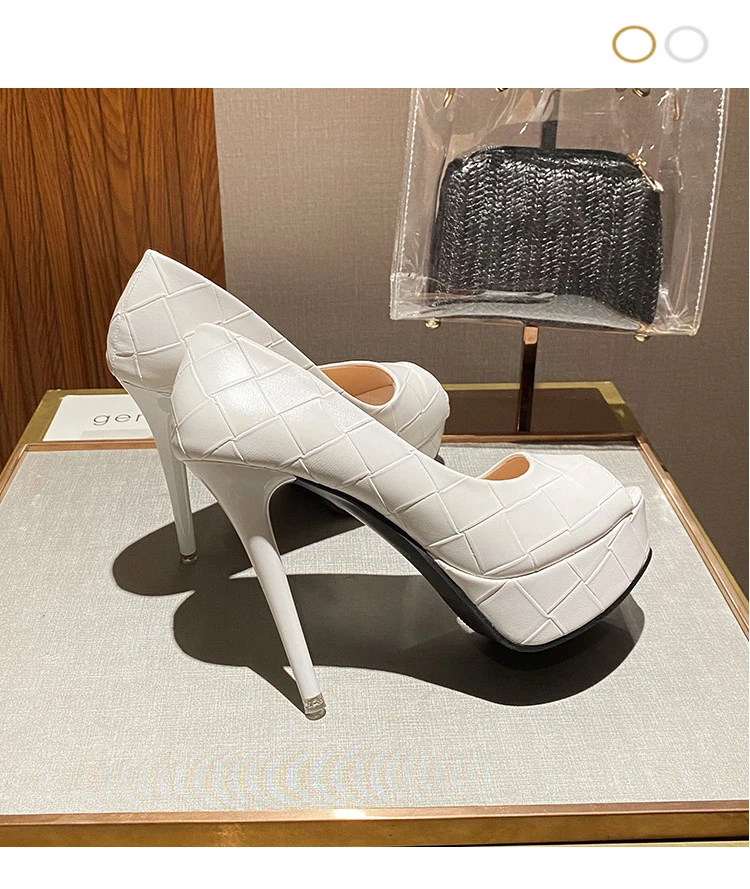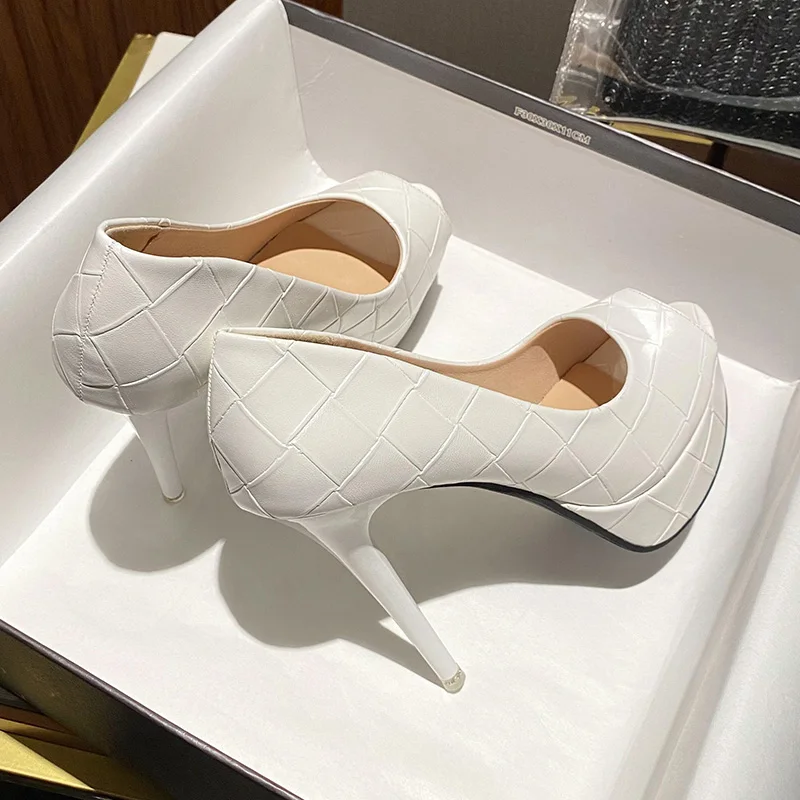 Женские туфли-лодочки на высоком каблуке и платформе; Цвет черный, белый; Элегантные свадебные туфли на высоком каблуке 12 см с открытым носком в сдержанном стиле; Дизайнерская женская обувь для офиса