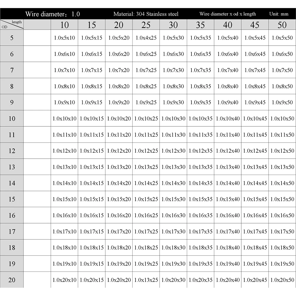 Пружина сжатия для игрушек, диаметр 1 мм, 50 шт.