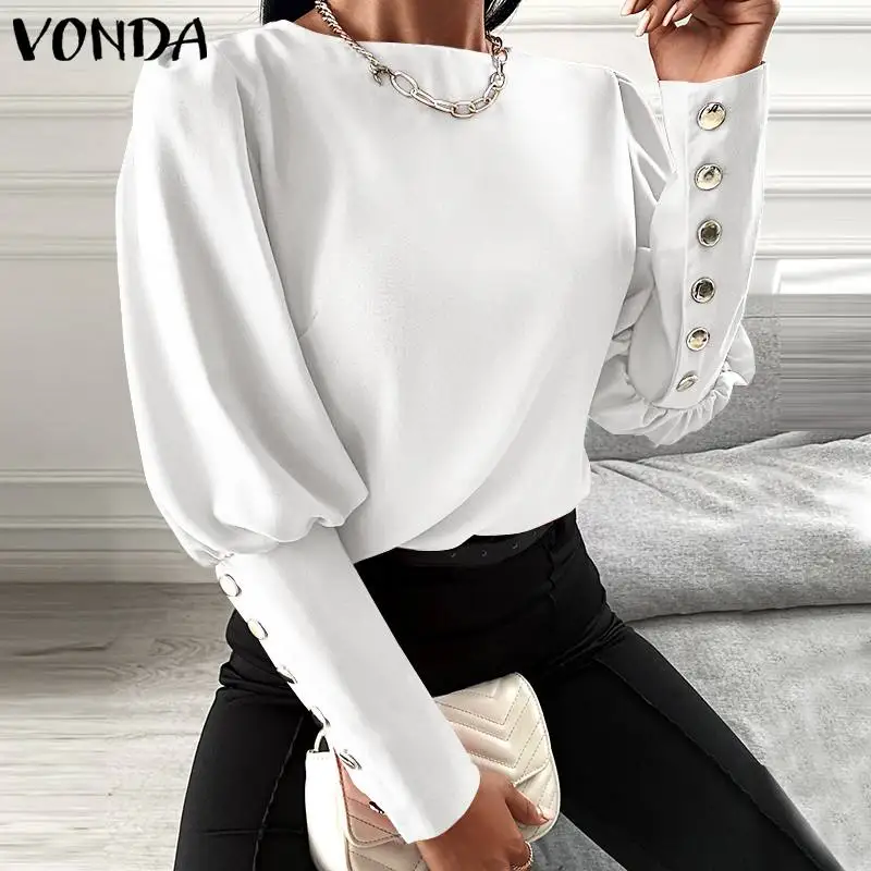 2022 вечерние рубашки VONDA, Женская однотонная блузка с длинным ру...