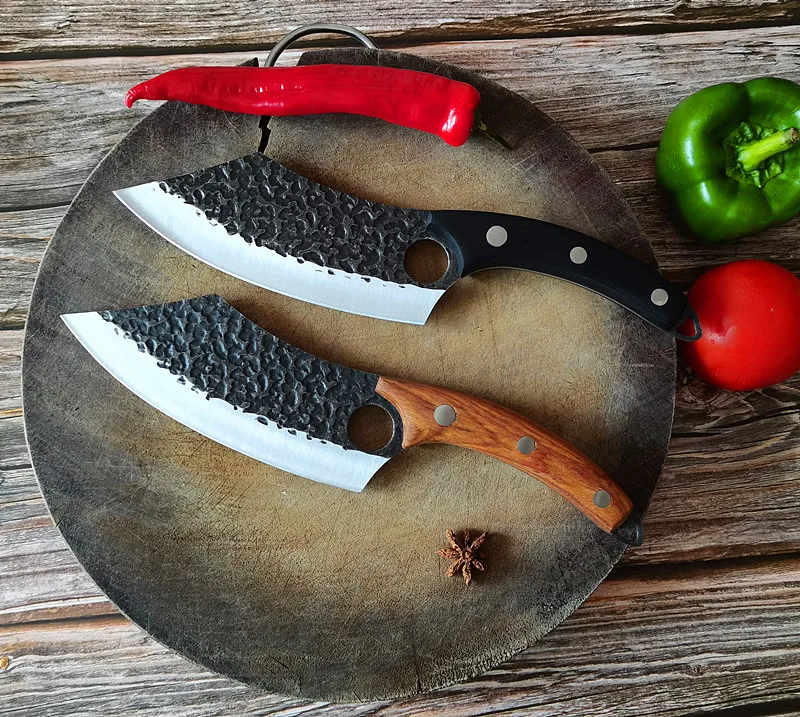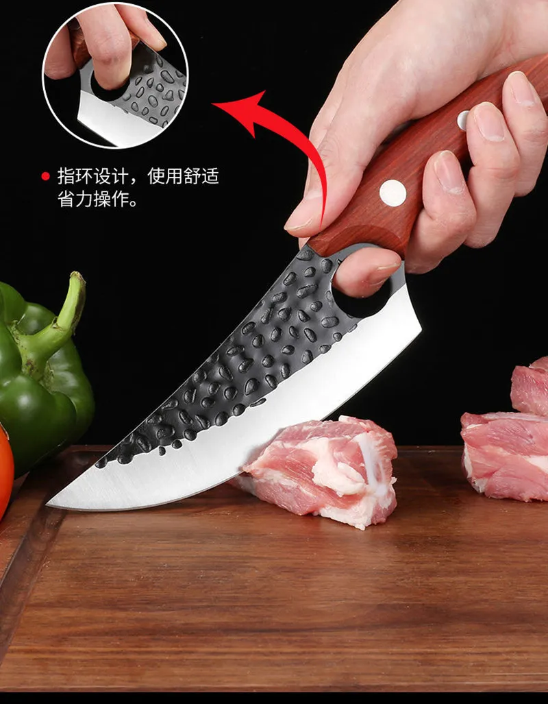 Кованый нож с отверстием для пальца, кованый кухонный нож из нержав...