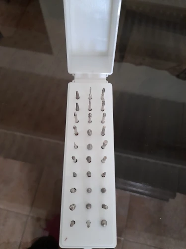 Держатель сверл для ногтей имеет небольшой размер, но большой объем хранения. Коробка сверл устойчива к ржавчине, пыли и достаточно антиоксидант, чтобы защитить ваши сверла. Контейнер для сверл сохранит свежесть Ваших сверл для ногтей. 30 инструмент для сверления отверстий бит Органайзер удобен и портативный, когда Вы выносите его наружу для дизайна ногтей. Органайзер для сверл можно разместить на столешнице или комоде, чтобы сверла для ногтей выглядели аккуратно и упорядоченно.