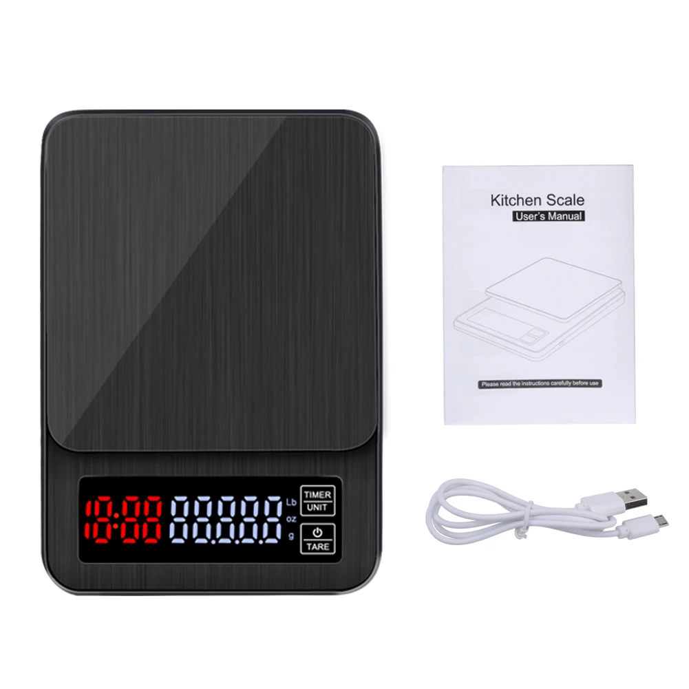 Цифровые электронные весы для кофе, высокоточные кухонные весы 3 кг 5 кг 10 кг 0,1 г с ЖК-дисплеем и таймером, зарядка от USB