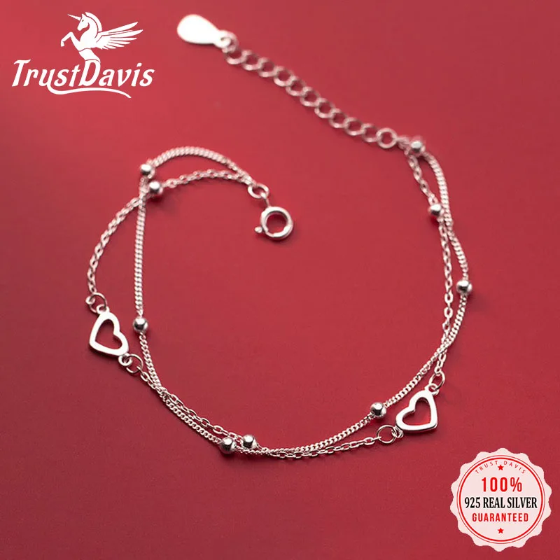 Trustdavis подлинный 925 Стерлинговое серебро Мода Двойная Цепочка Романтический Сердце браслет для женщин День Святого Валентина ювелирные изделия DB1174
