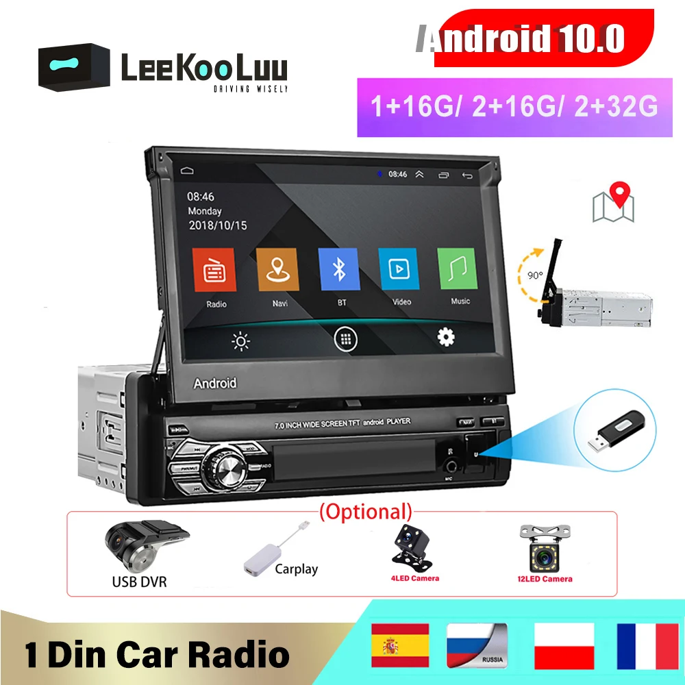 LeeKooLuu Android 10,1 1Din автомобильное радио GPS выдвижной 7 ''сенсорный экран Wifi Авторадио 1 Din Автомобильный мультимедийный MP5 видео плеер