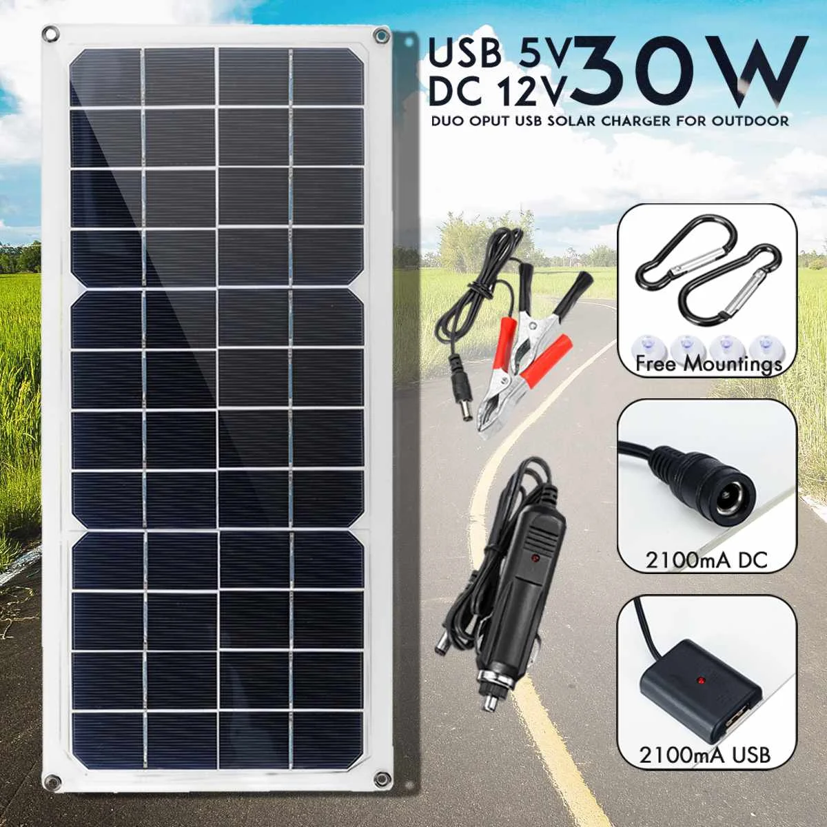 30 Вт Солнечная батареяМощностьЗарядная панель w присоски и карабинДля DUO выход для 12V5V вентилятор для кемпинга/лампа/система генератора мощности