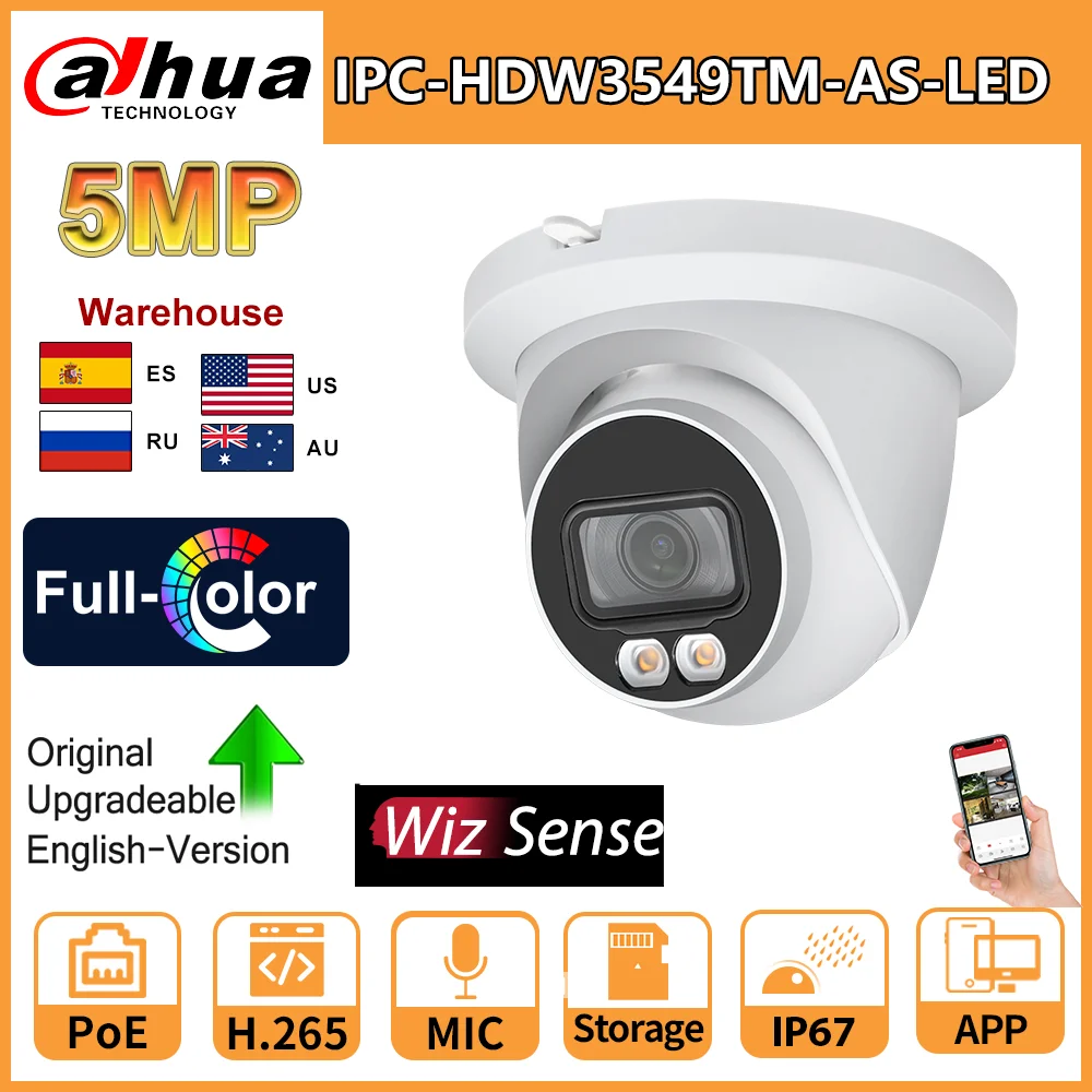 Камеры Dahua с разрешением Full-Цвет IP Камера 5MP IPC-HDW3549TM-AS-светодиодный Встроенный микрофон теплые светодиодный Поддержка SD карты Цвет Vu, работающего на постоянном токе 12 ВPoE IP67 WizSense Cam
