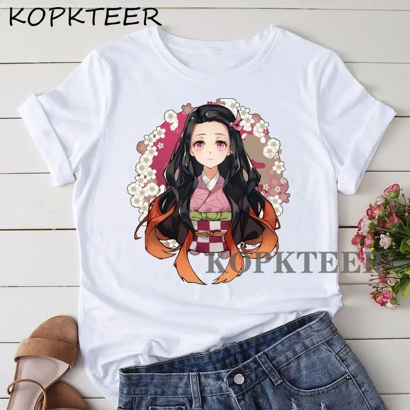 Футболка женская с изображением рассекающего демонов, милая мультяшная рубашка в стиле японского аниме, танджиро камадо, в стиле Харадзюку