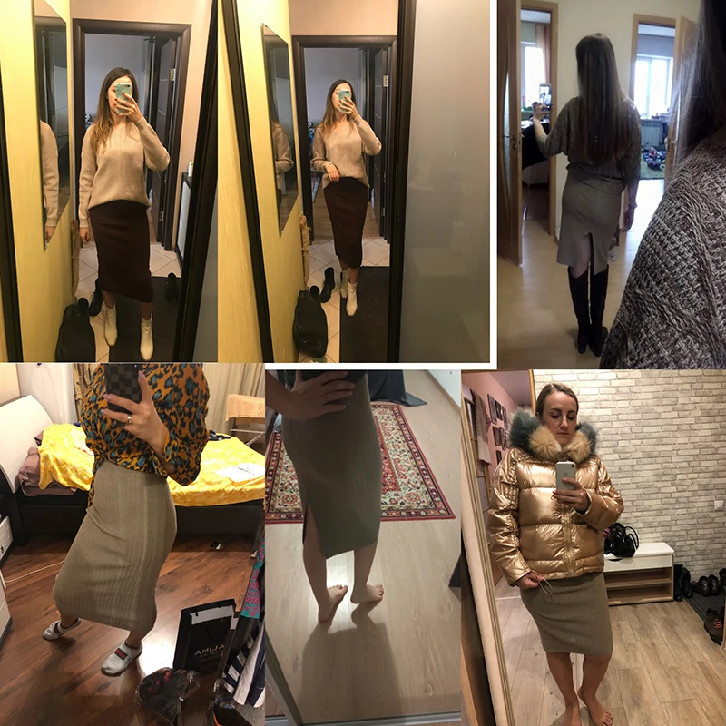 Винтажная зимняя женская юбка-свитер, эластичная, с высокой талией,...