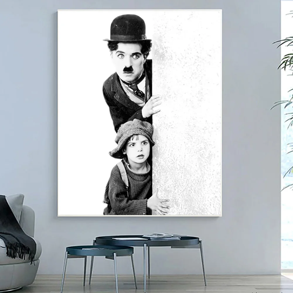 Черно-белый классический фильм Чарльза Чаплина модульный настенный постер и печать на холсте Картина декор для гостиной