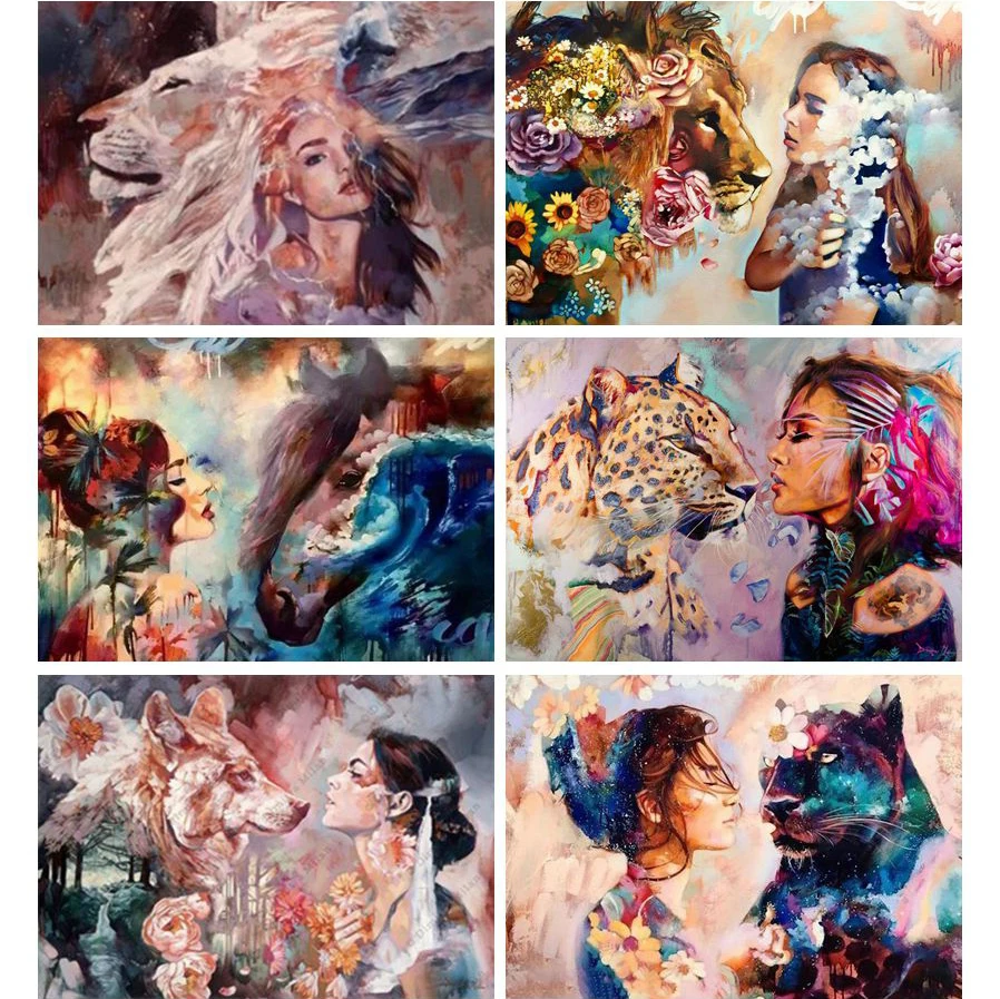 Алмазная картина 5D "сделай сам" Лев и животные, Лев, волк, вышивка крестиком, мозаика для домашнего декора, наборы для рукоделия, подарки