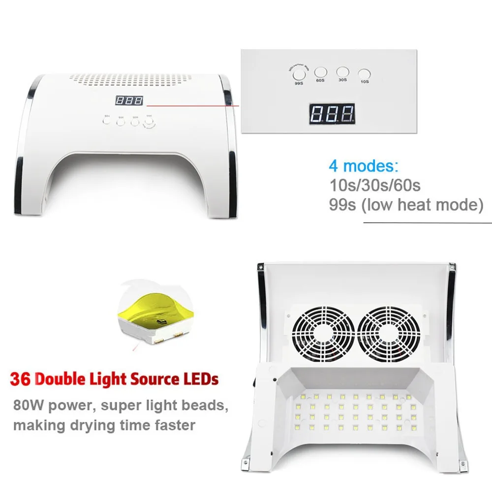 Сушилка для ногтей 80 Вт, 36 светодиодов, УФ-лампа, сушилка для гель-лака 2 в 1, лампа для ногтей и уборщик пыли для ногтей, товары для профессионалов