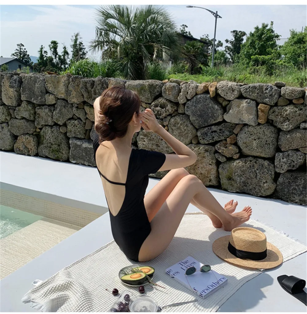 Цельный купальник в Корейском стиле, Женская однотонная одежда для ...