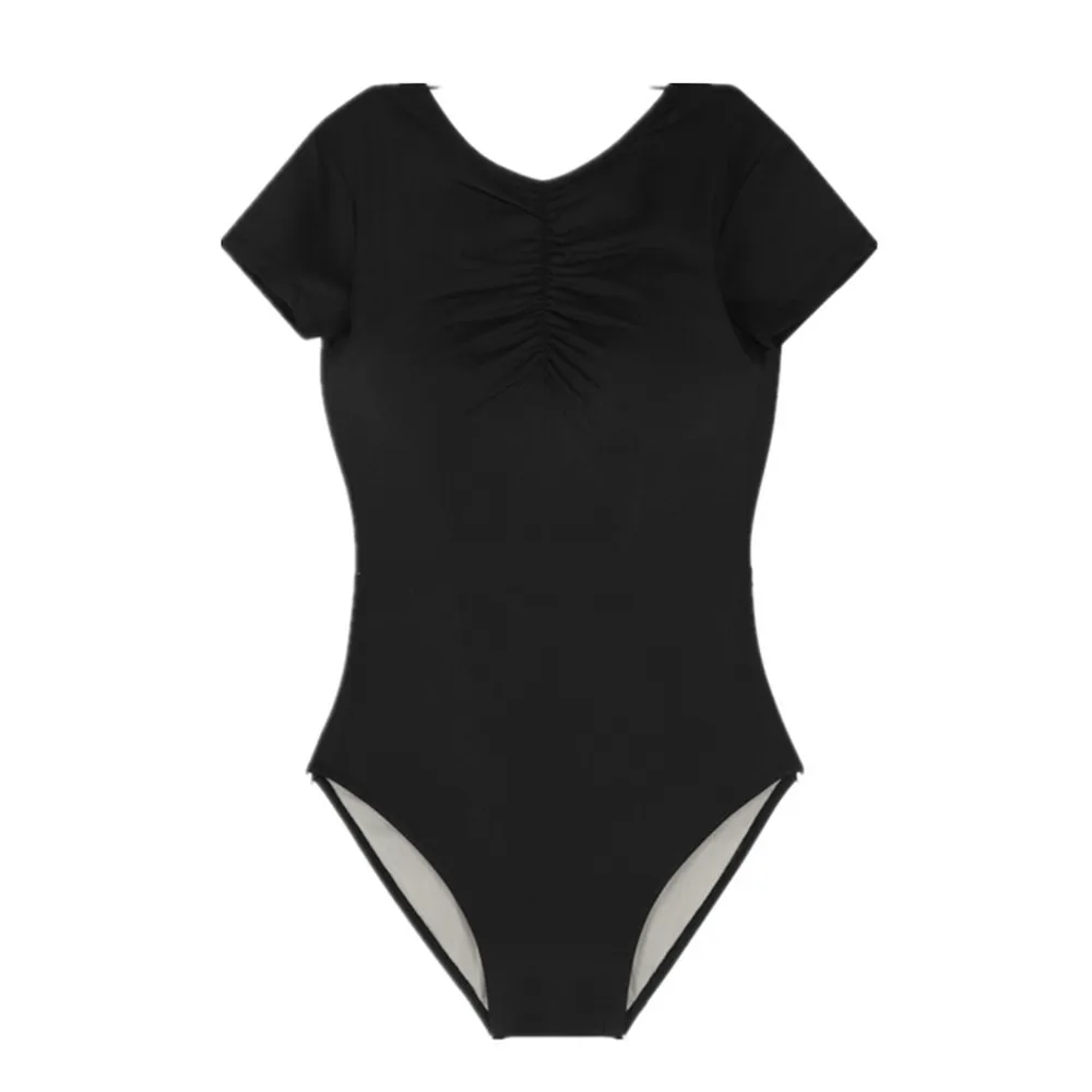 Сексуальный цельный купальный костюм с коротким рукавом, Женская однотонная одежда для плавания, монокини с открытой спиной, плиссированный купальный костюм с открытыми плечами, купальный костюм пуш-ап
