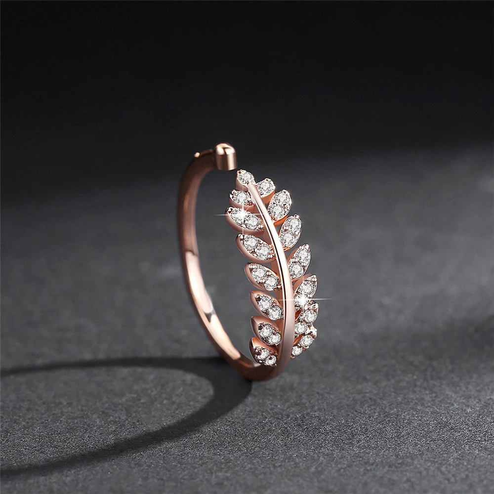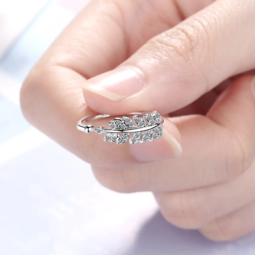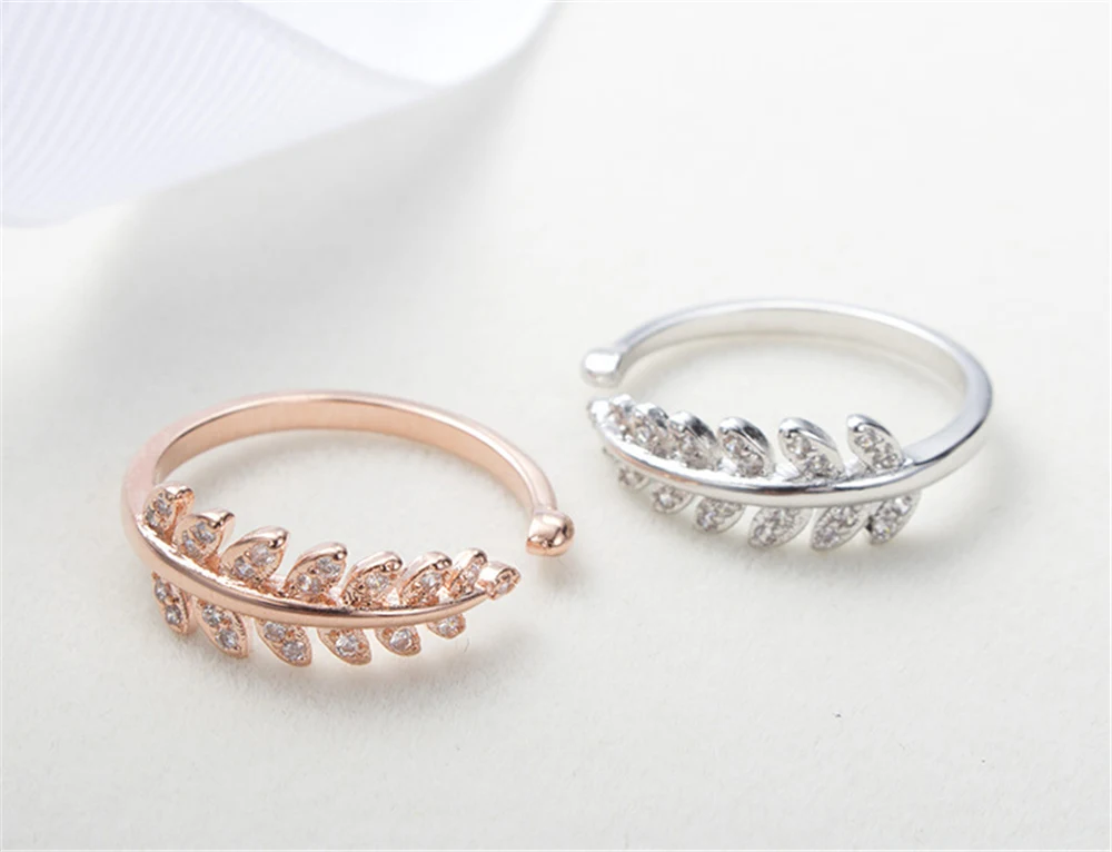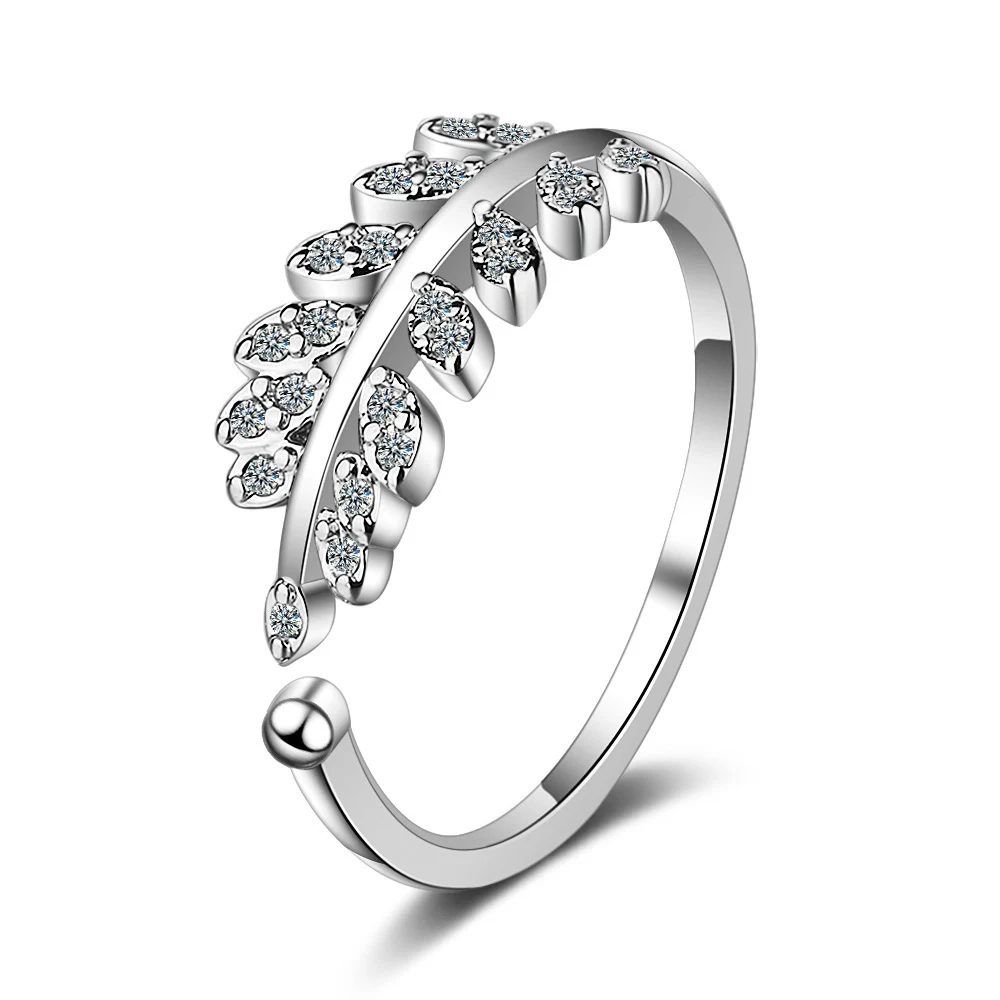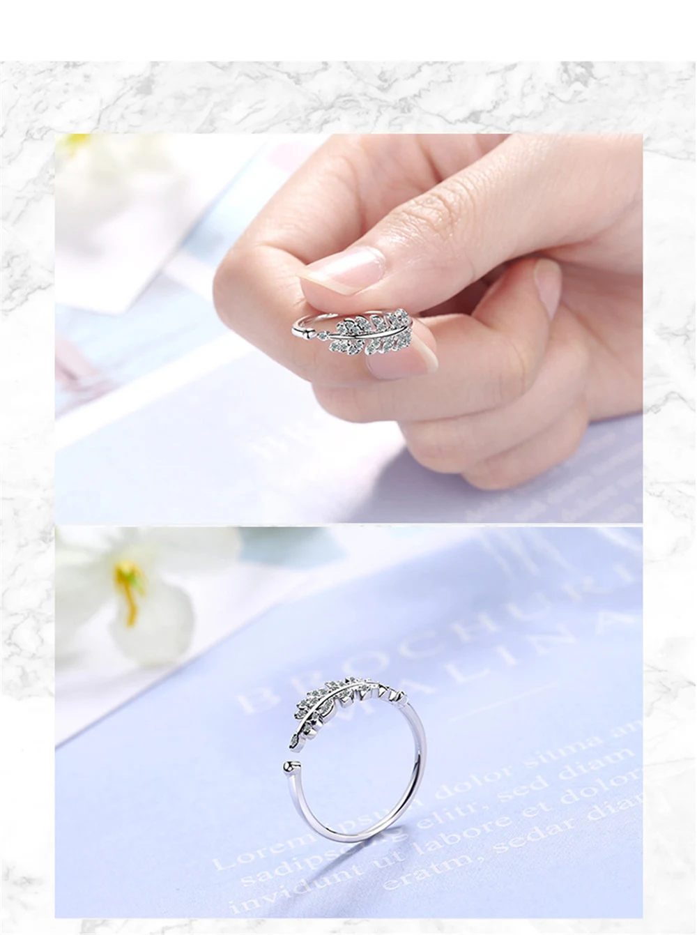 Творческий свежие листья, кольца для женщин, модные циркониевые девичьи серьги японский в Корейском стиле Простые открытые Регулируемые кольца, ювелирные подарки