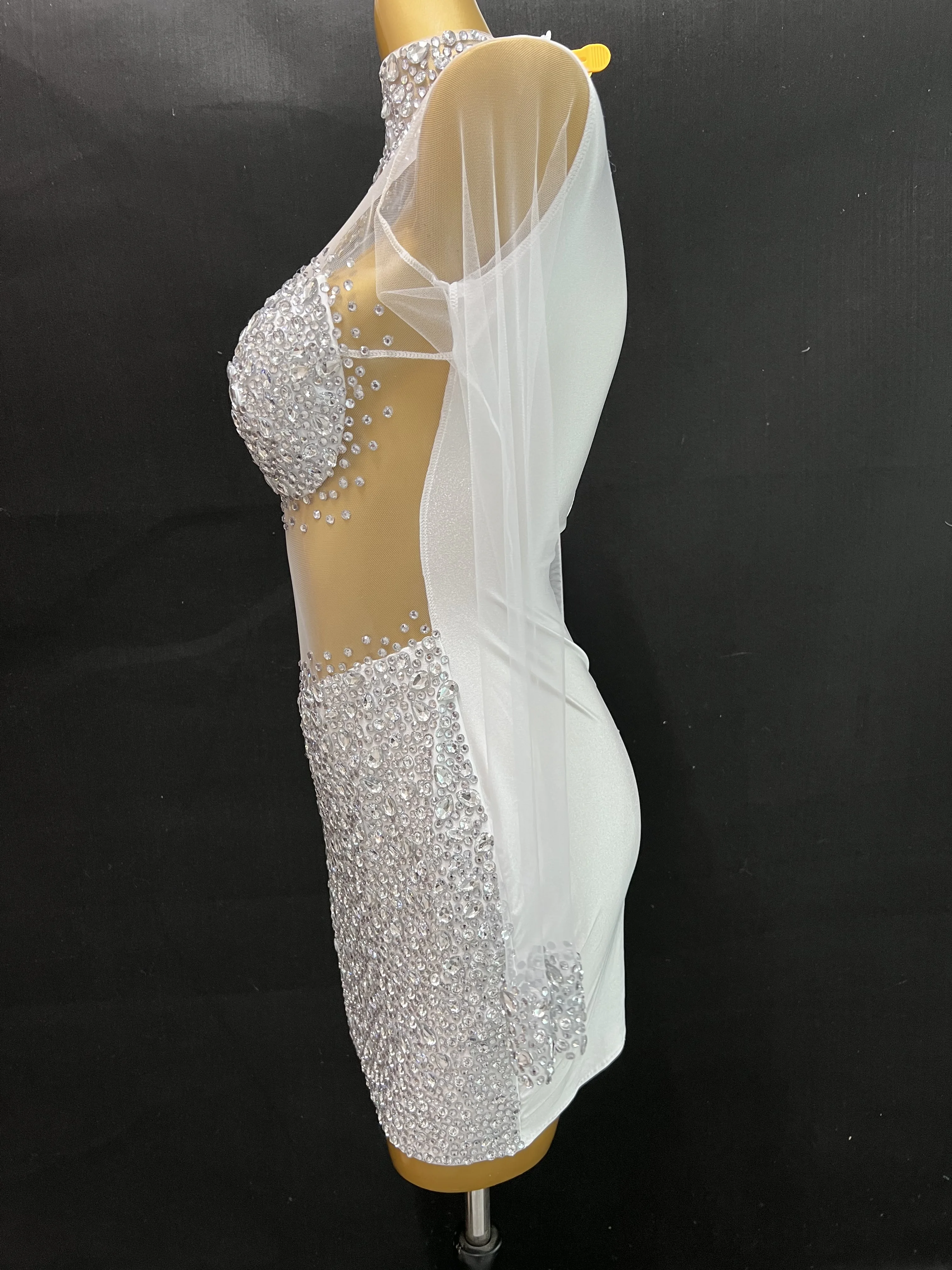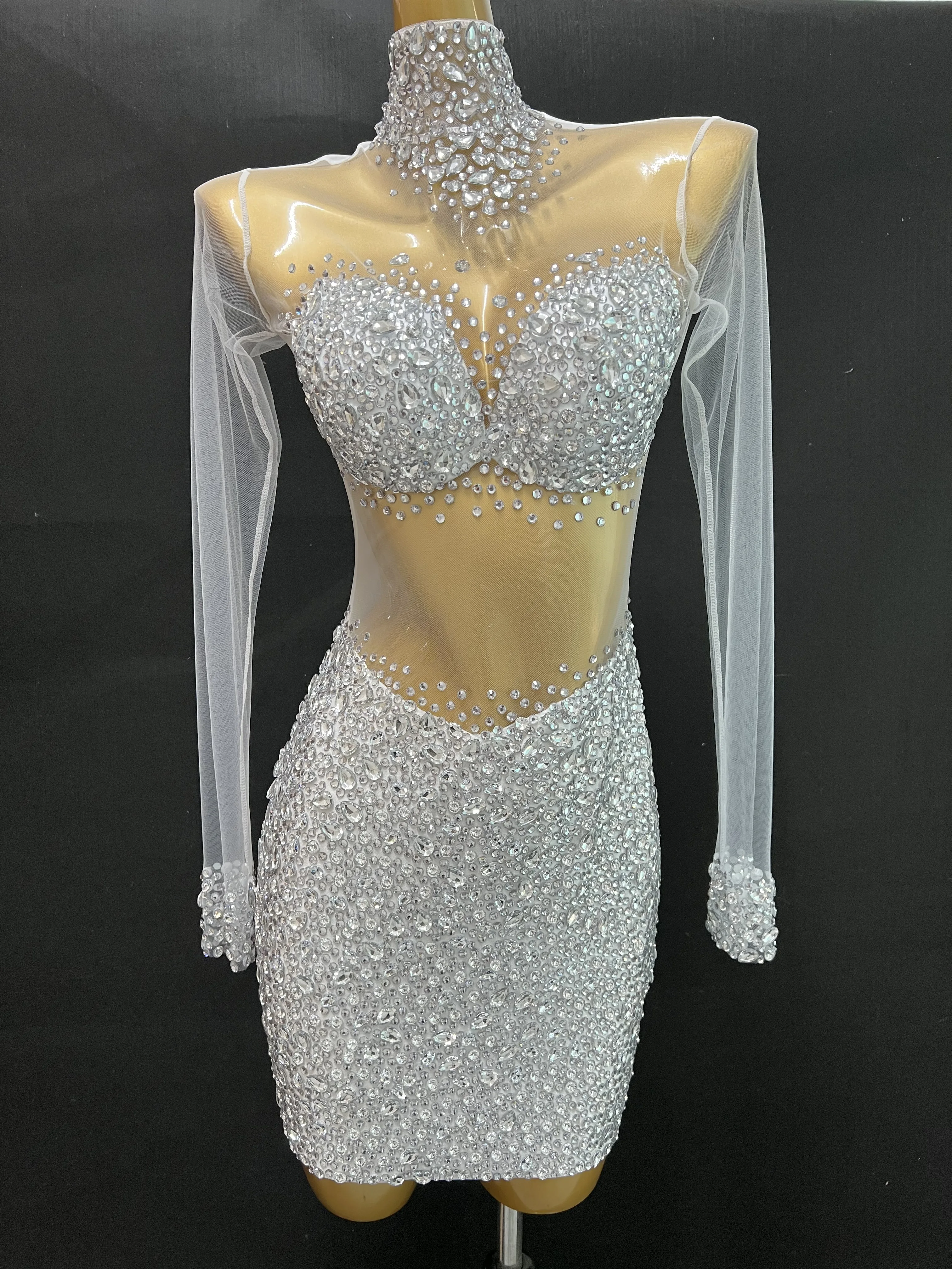 Платье с прозрачными камнями небесно-голубого цвета, наряд для вечеринки на день рождения, женские комбинезоны, костюм для выступлений и танцев команды певицы