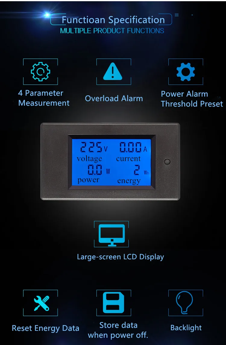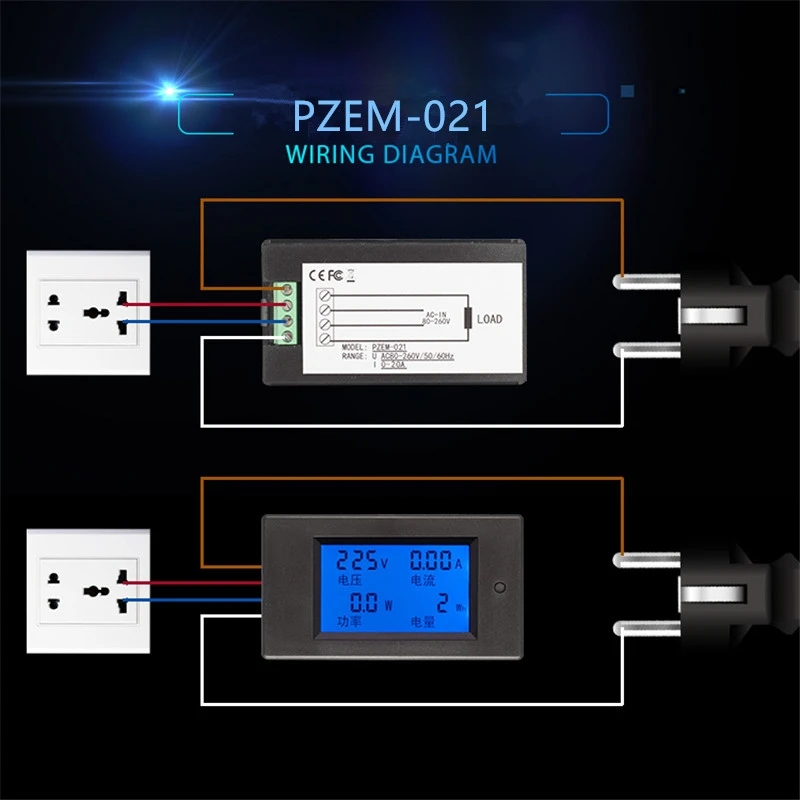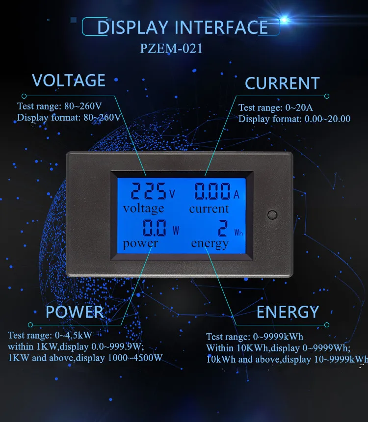 PZEM-021 AC однофазный цифровой ЖК-Амперметр Вольтметр 80-260 В 20A 4 в 1 Электрический вольтметр мощность кВтч для Homekit