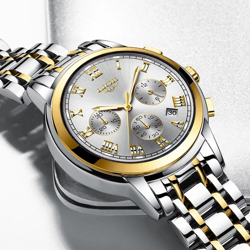 Часы наручные LIGE женские кварцевые, роскошные светящиеся водонепроницаемые с ремешком, с коробкой, 2021