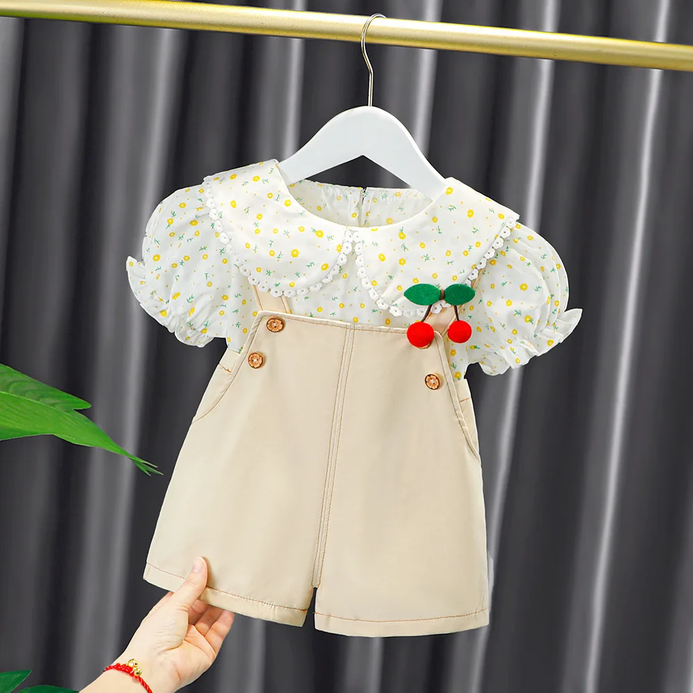 Комплект одежды для новорожденных девочек, рубашка с цветочным рисунком + джинсовый комбинезон, одежда для малышей 1 год, комплекты на день рождения