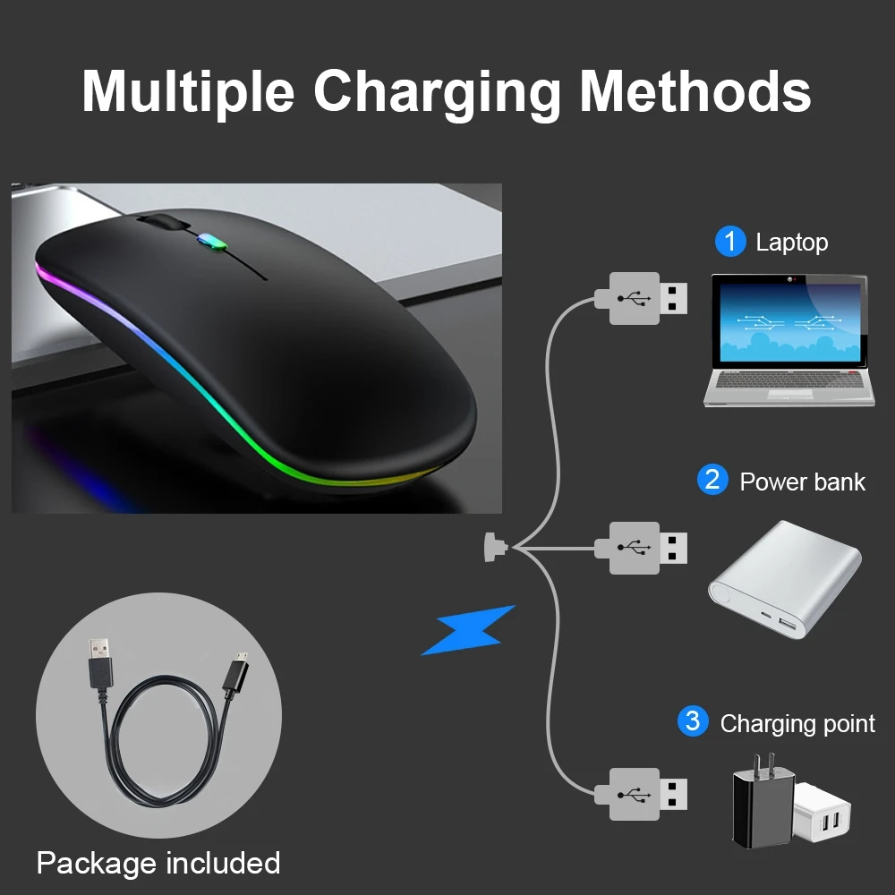 RGB игровая мышь беспроводная, 2,4G Wi-Fi+Bluetooth беспроводная мышка usb, компьютерная игровая беспроводная,