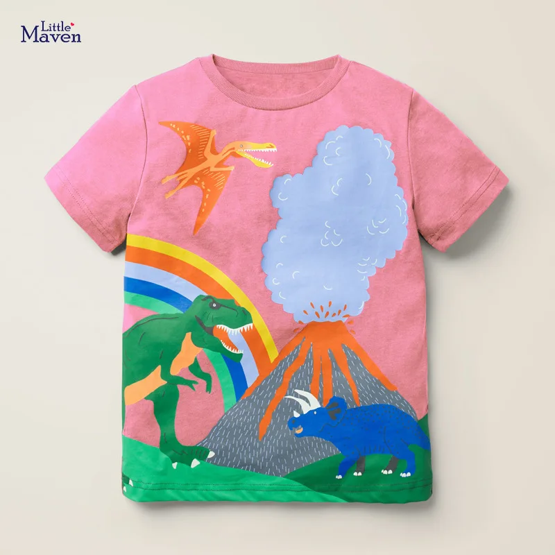 Little Mavenдетей 2021 летняя одежда для маленьких девочек футболка Топы радужной расцветки с принтом "динозавр"; Брендовые хлопковые футболки с короткими рукавами, футболка для детей с рисунком из От 2 до 7 лет