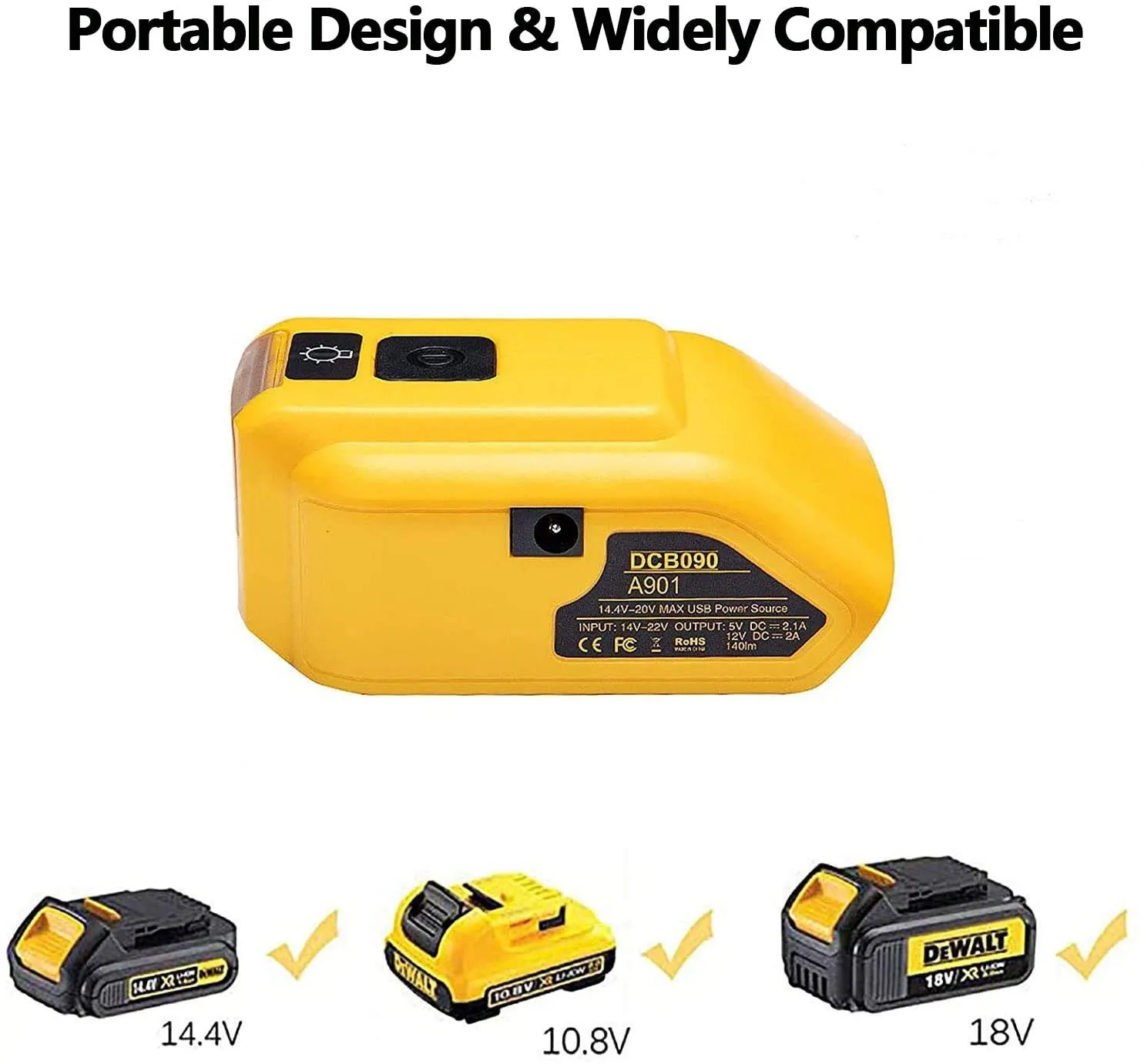 Обновленный сменный источник питания DCB090 для Dewalt 20 в, макс. 18 в, аккумулятор адаптер с двойным USB DC 12 В, светодиодный рабочий светильник