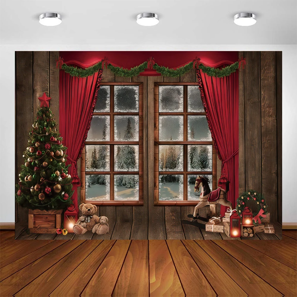 Yeele Фотофон с деревом окном шторы Рождественская елка фотосессия ...