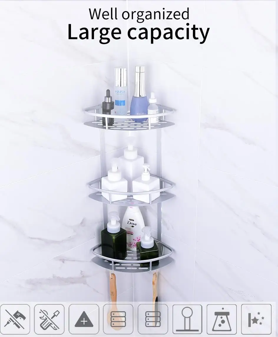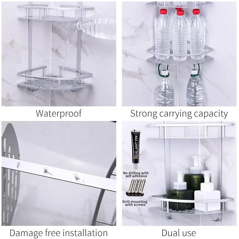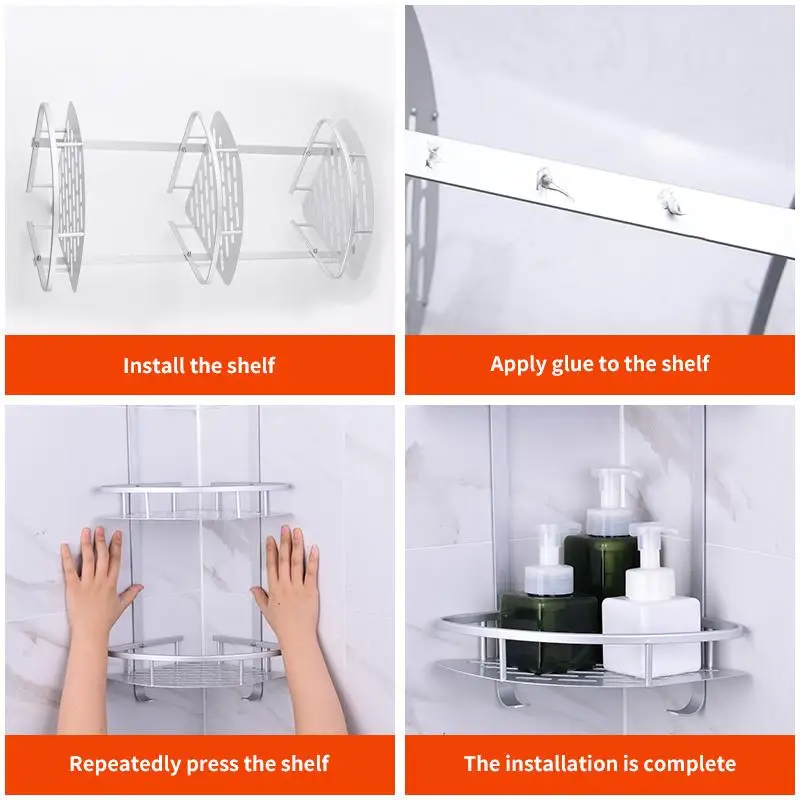Алюминиевая Полка для душа без перфорации, лейка для душа, кухонная корзинка для хранения клейкие присоски, угловые полки для душа