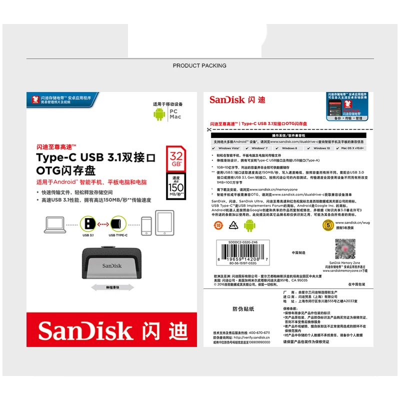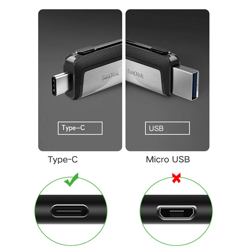 Флеш-накопитель Sandisk Ultra Dual Drive USB OTG Type-c 64 Гб 128 ГБ Портативный USB 3,0 Mini OTG флеш-накопитель Type C Высокоскоростной usb type-c кабель micro-usb type-c Флешка otg type высокоскоростной флеш-накопитель c type c на usb-накопитель 3.1 Тип c
