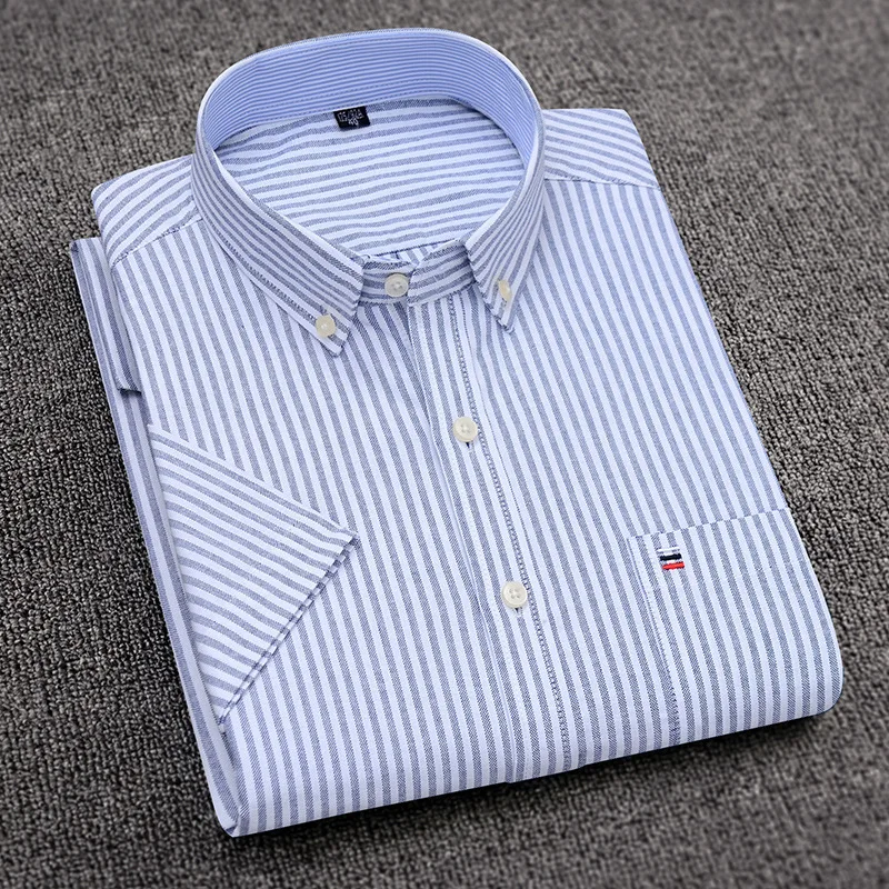 Рубашка мужская из ткани Оксфорд с короткими рукавами, мягкая удобная блуза из 100% хлопка, качественная сорочка классического кроя в повседневном и деловом стиле, Размеры S -7XL, лето