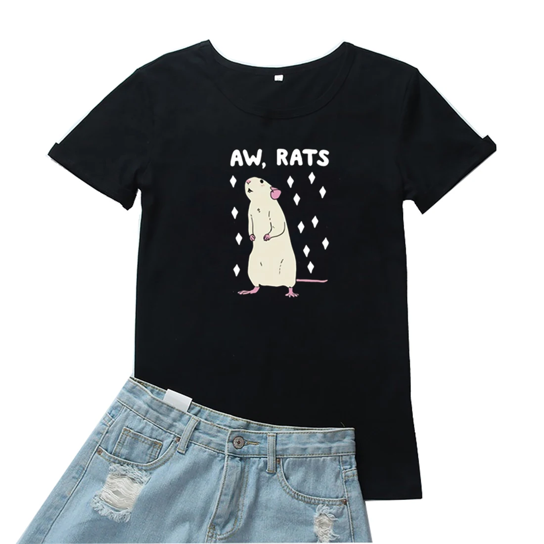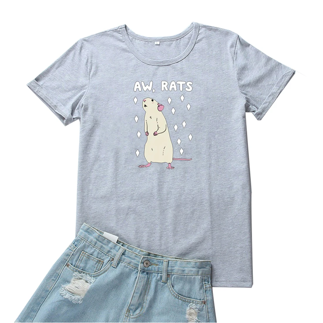 Женская футболка Aw Rat, с забавным рисунком, свободная, белая, с коротким рукавом